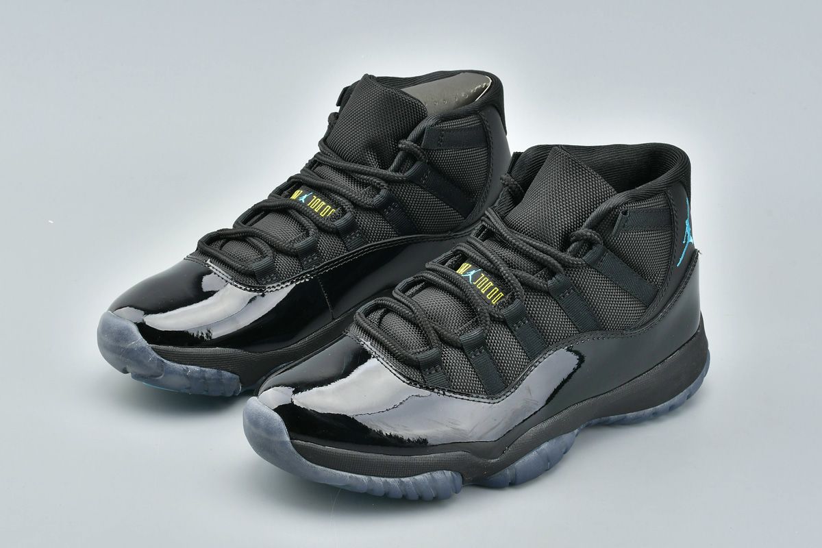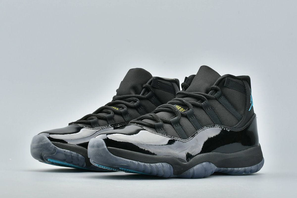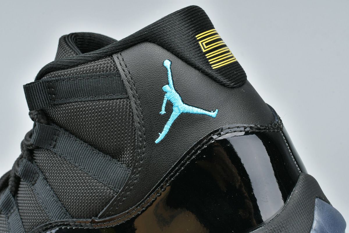 The Air Jordan 11 Retro ‘Gamma Blue’ was an all-new colorway released in December 2013. The upper combines black mesh and patent leather with Gamma Blue Jumpman branding. The design also features a black midsole, a translucent blue outsole, and varsity maize accents on the tongue and heel.