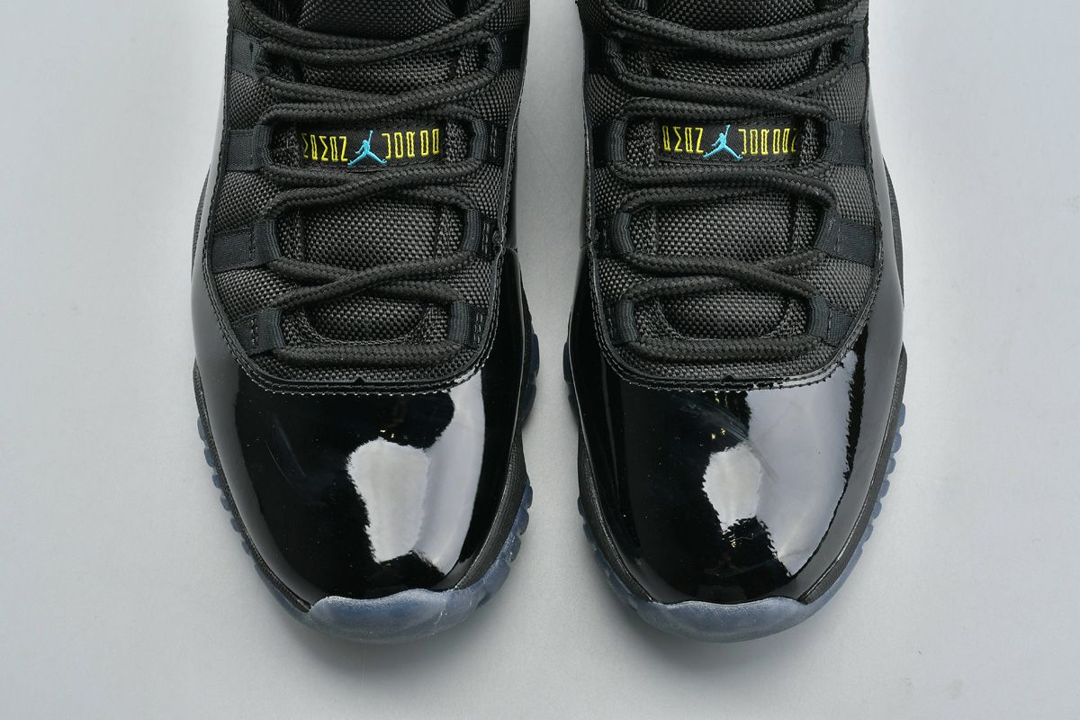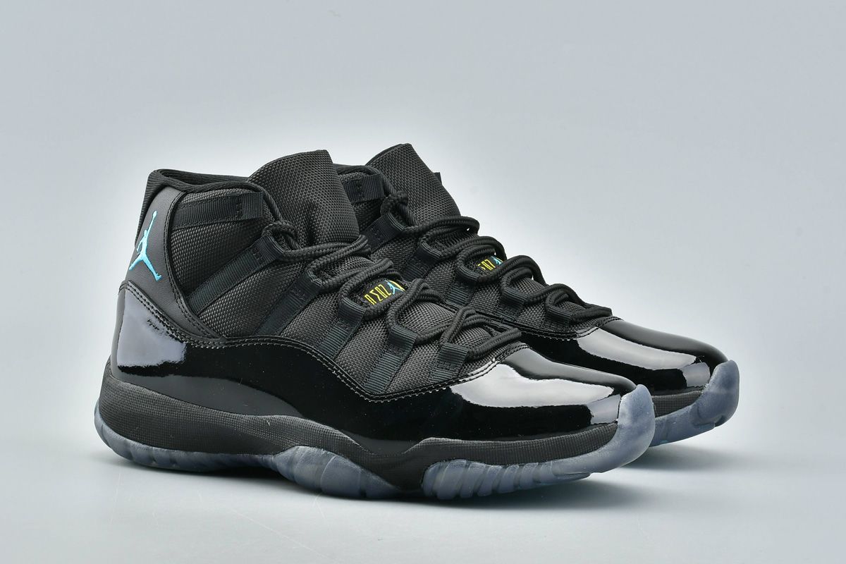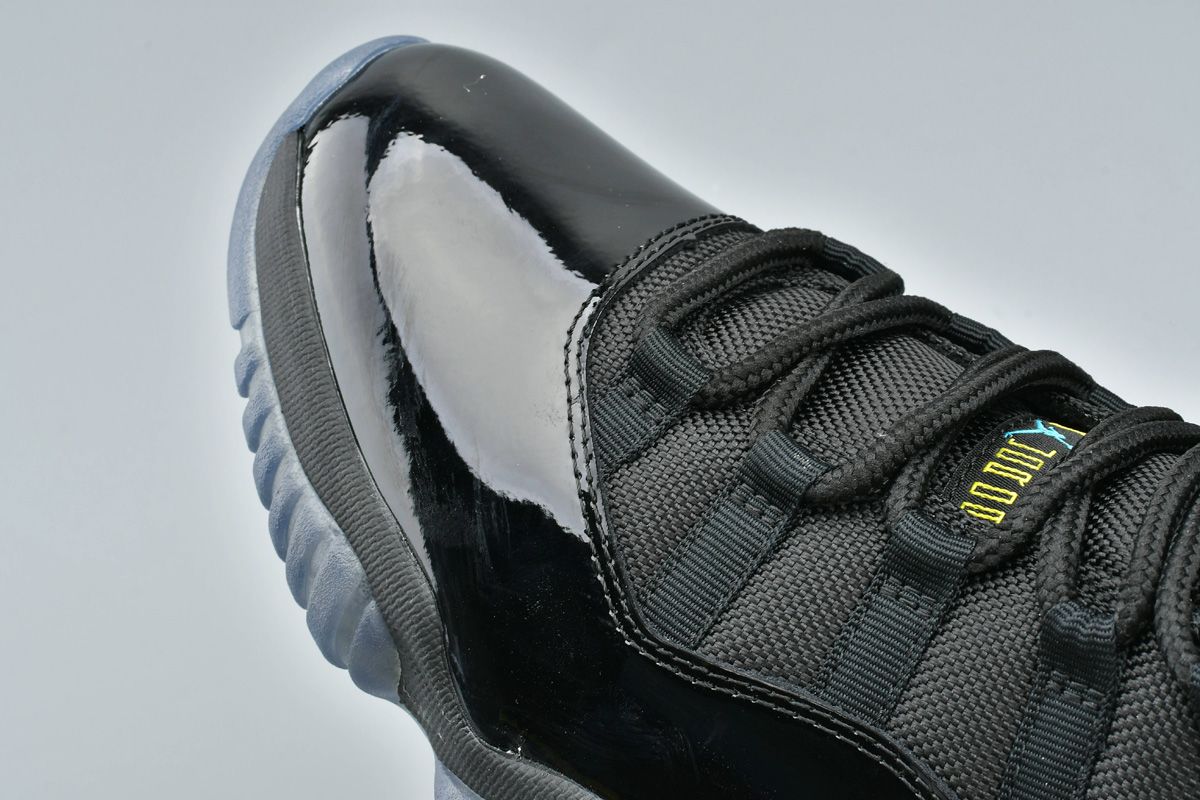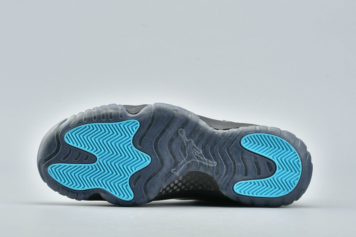 The Air Jordan 11 Retro ‘Gamma Blue’ was an all-new colorway released in December 2013. The upper combines black mesh and patent leather with Gamma Blue Jumpman branding. The design also features a black midsole, a translucent blue outsole, and varsity maize accents on the tongue and heel.