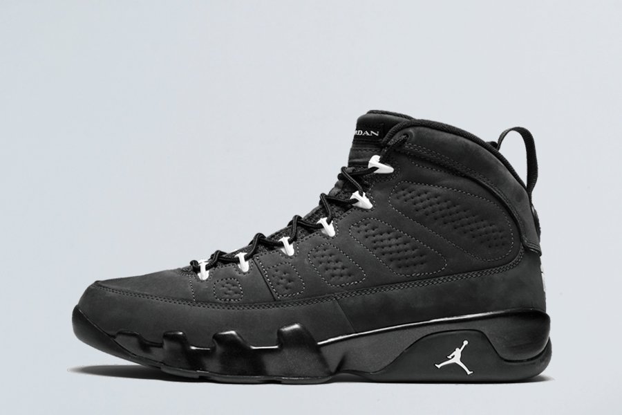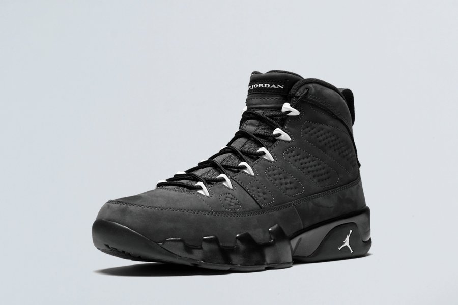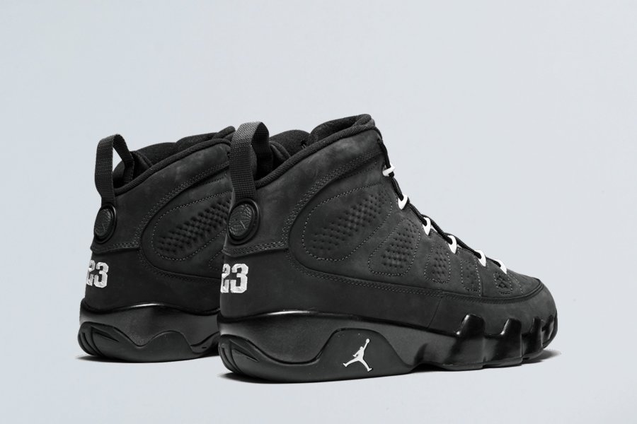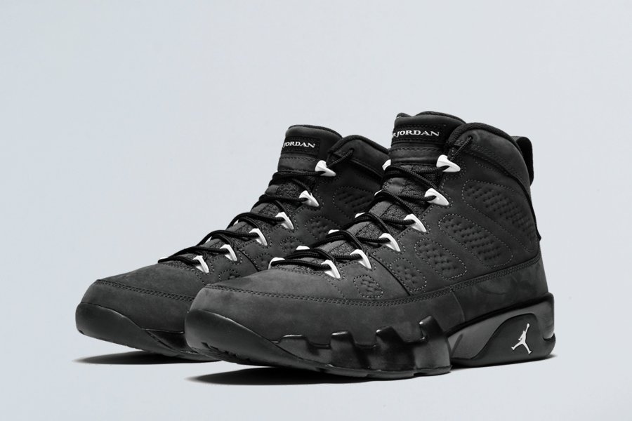 The Air Jordan 9 “Anthracite” is done up in a predominantly Anthracite nubuck upper with Black hits throughout added as a complimenting touch. White finishes throughout contrast the sneaker’s appearance which is also the sneaker’s finishing touch.