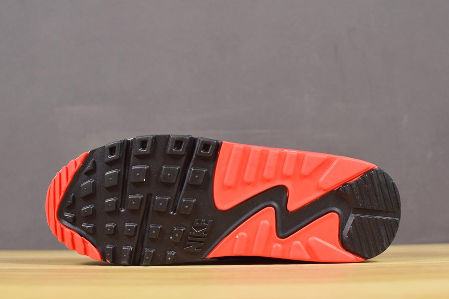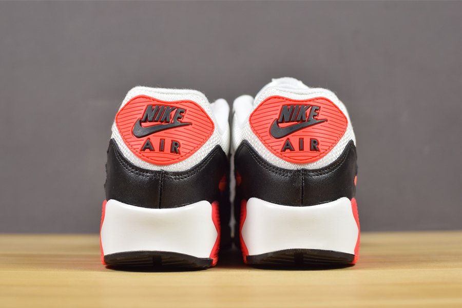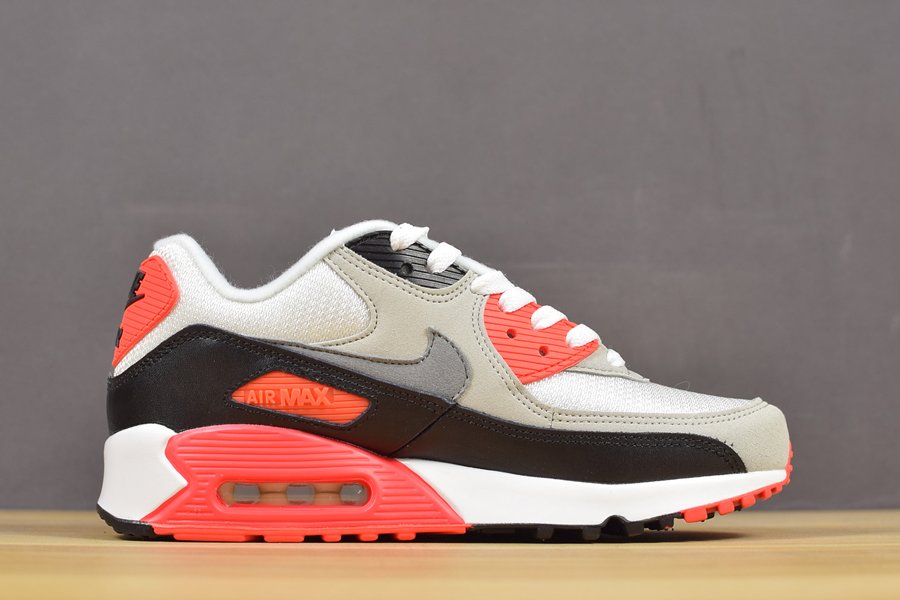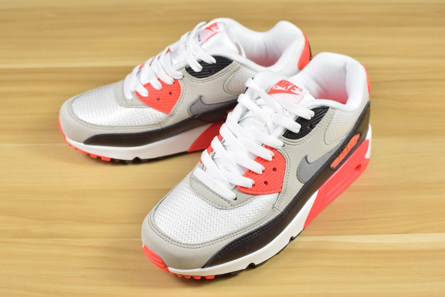 The Nike Air Max 90 OG ‘Infrared’ 2015 was released in June of 2015 in celebration of the 25th anniversary of the iconic Air Max 90 silhouette. This retro version comes with a white mesh upper with grey suede and black leather overlays and Infrared accents on the tongue, heel, eyelets, midsole, and outsole.