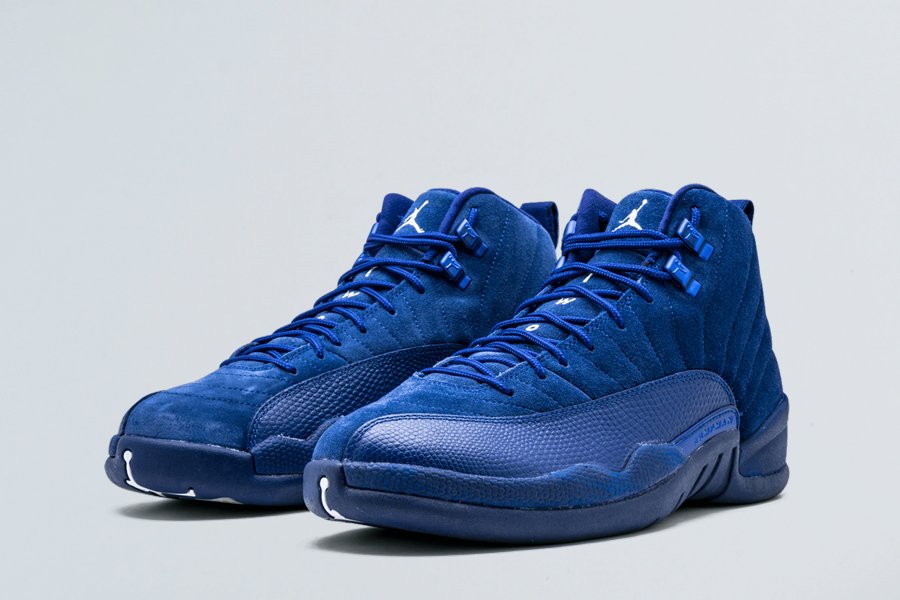 This Air Jordan 12 comes dressed in a mixture of Deep Royal Blue, White and Metallic Silver color scheme. The shoe features a Blue suede upper with leather textured overlays, White branding and Metallic Silver contrasting accents throughout.