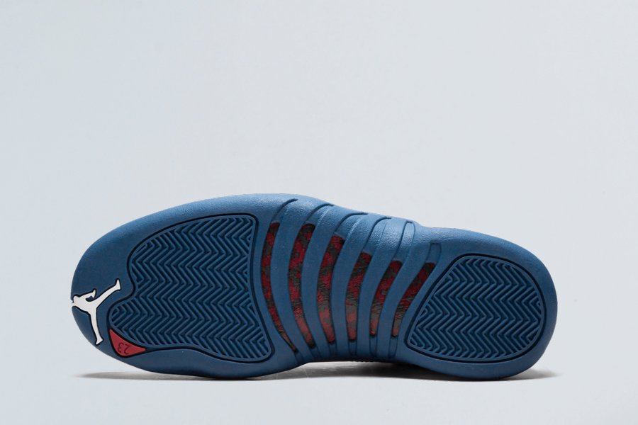 The Air Jordan 12 Retro “French Blue” returns in 2016 for the first time since the original released in 2005. The sneaker features a white textured leather upper with a french blue mudguard, metallic silver, and varsity red accents.