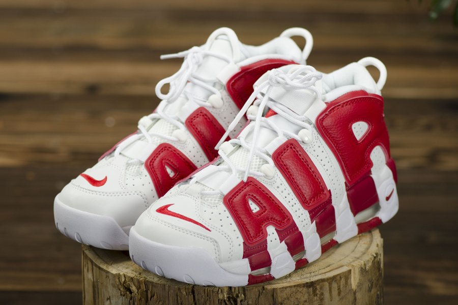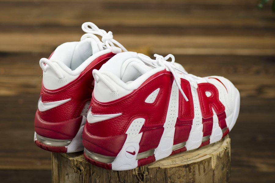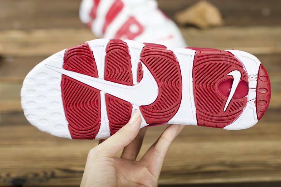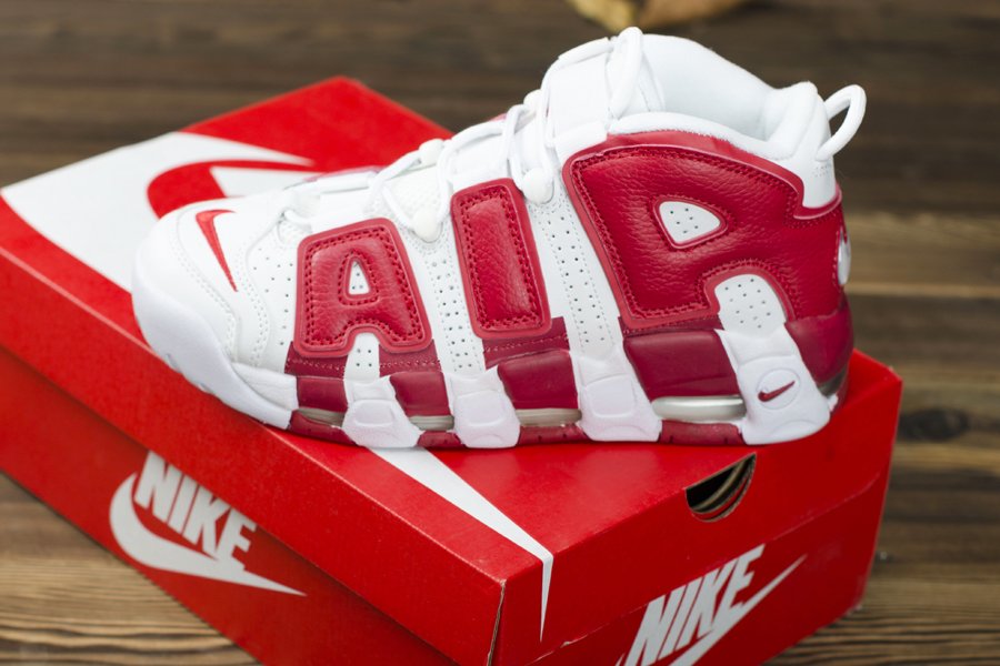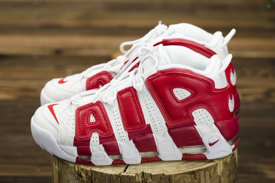 The most shamelessly branded sneaker ever worn by Scottie Pippen back in 1996 gets a colorway apparently inspired by his Bulls squad, with a white leather upper and vibrant Gym Red highlights for the “AIR” lettering that extends down onto the midsole for this audacious color block.