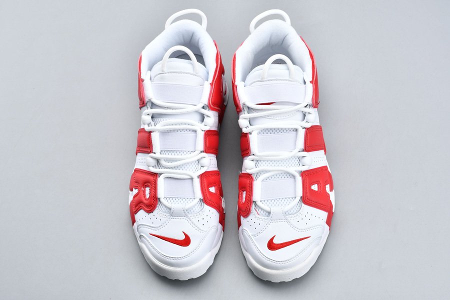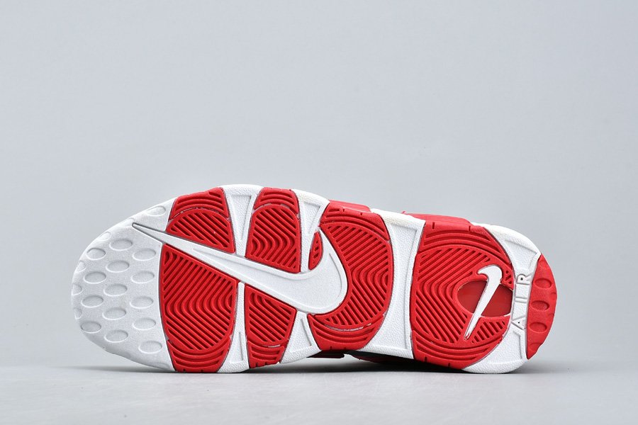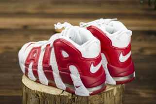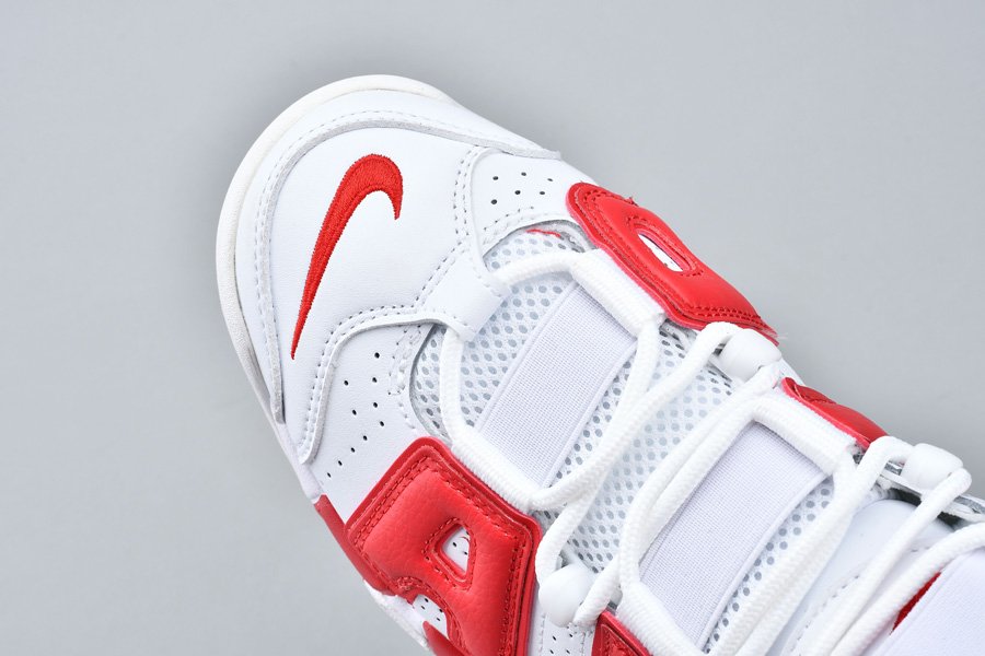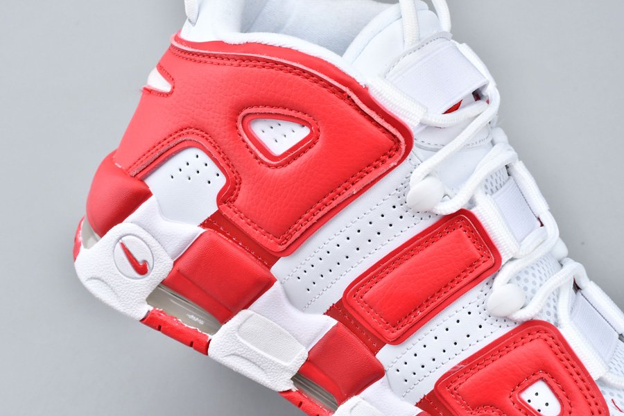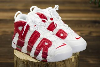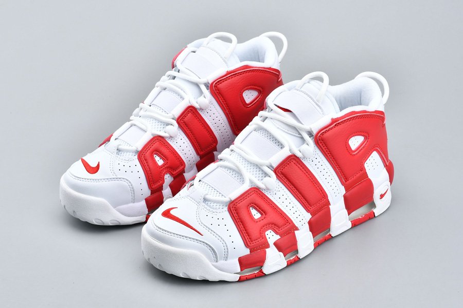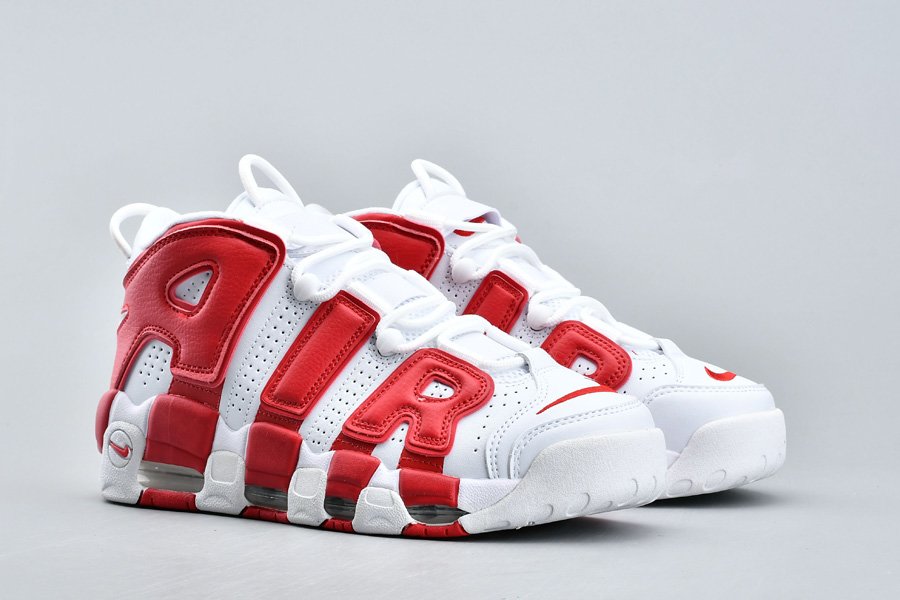 The most shamelessly branded sneaker ever worn by Scottie Pippen back in 1996 gets a colorway apparently inspired by his Bulls squad, with a white leather upper and vibrant Gym Red highlights for the “AIR” lettering that extends down onto the midsole for this audacious color block.