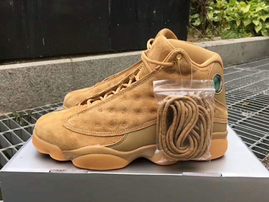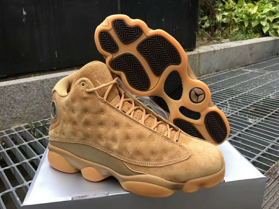 Dressed in an Golden Harvest and Elemental Gold color scheme. Unlike the Air Jordan 13 “Wheat” from 2004, this release will come fully covered in the “Wheat” makeover. While the colors are synonymous with the winter elements, the soft suede materials calmly contrast those with understated style.