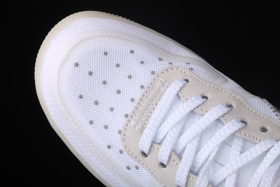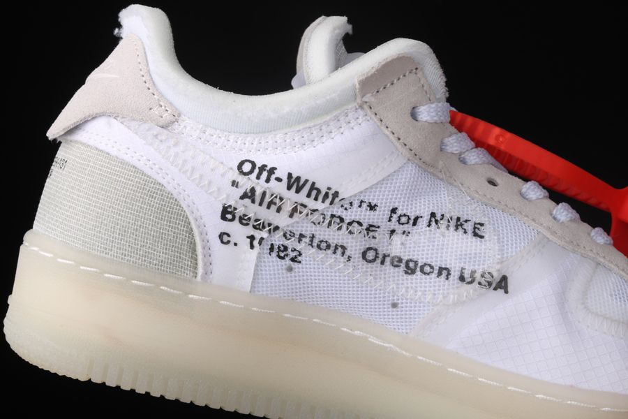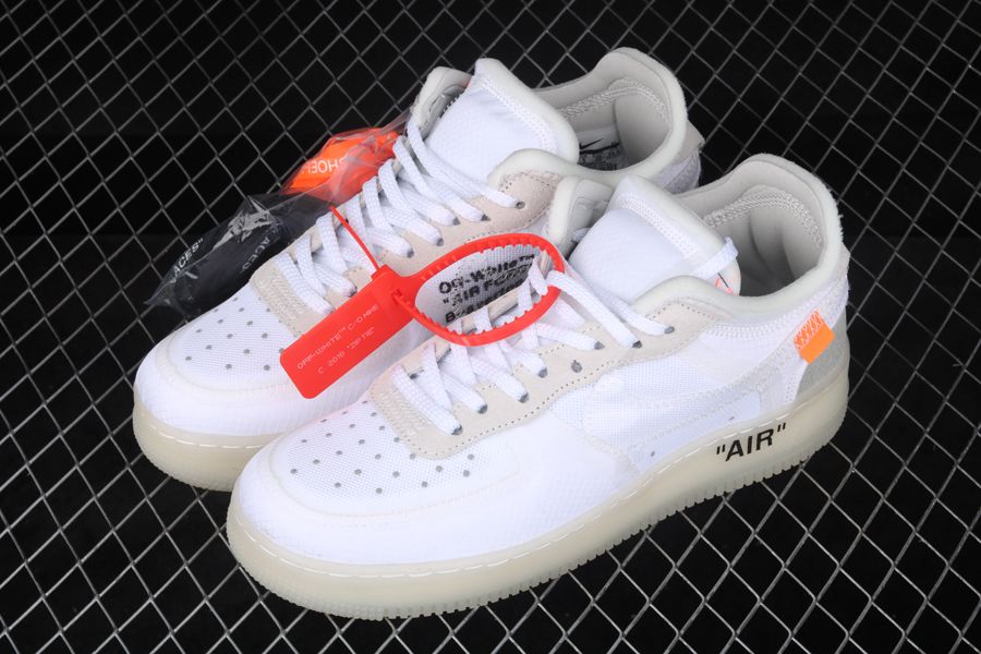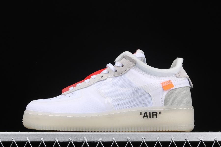 The Off-White x Nike Air Force 1 Low “The Ten” is the first edition of the iconic silhouette released within Virgil Abloh’s ongoing partnership with Nike. From the monumental “The Ten” collection of 2017, this Air Force 1 Low was a member of the “Ghosting” category of the set, featuring a translucent construction. The design features a white textile base with translucent white overlays and clear Swooshes, all sitting atop a translucent white rubber sole. The construction shares design cues with the rest Abloh’s Nike designs, most notably the bold “AIR” messaging on the midsole, orange tab, red zip-tie, and exposed stitching and foam. There have been many Off-White x Nike Air Force 1s released, but none hold the historic importance of this original colorway.
