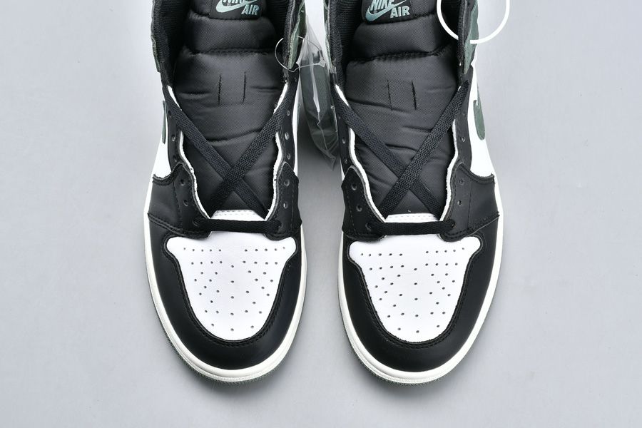 This Air Jordan 1 Retro High OG is known as the “Clay Green” edition. They come in summit white, clay green and black. Sporting a white and black leather upper with green suede accents and original “Nike Air” branding adorning the tongue tag.