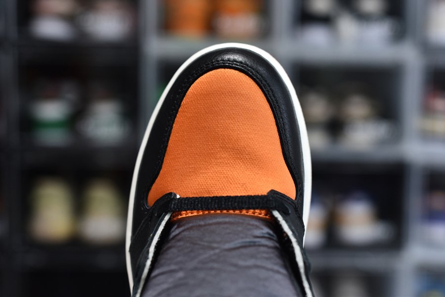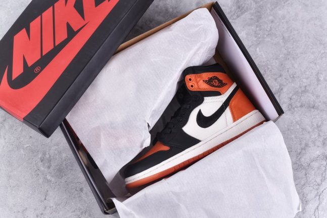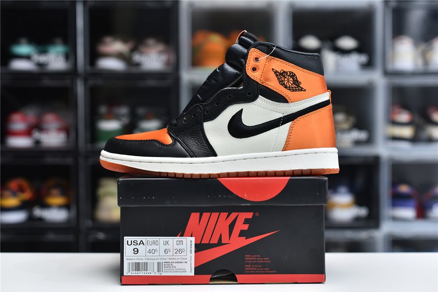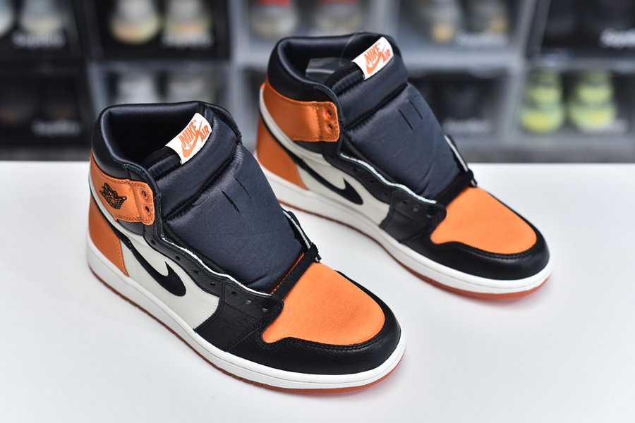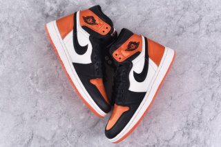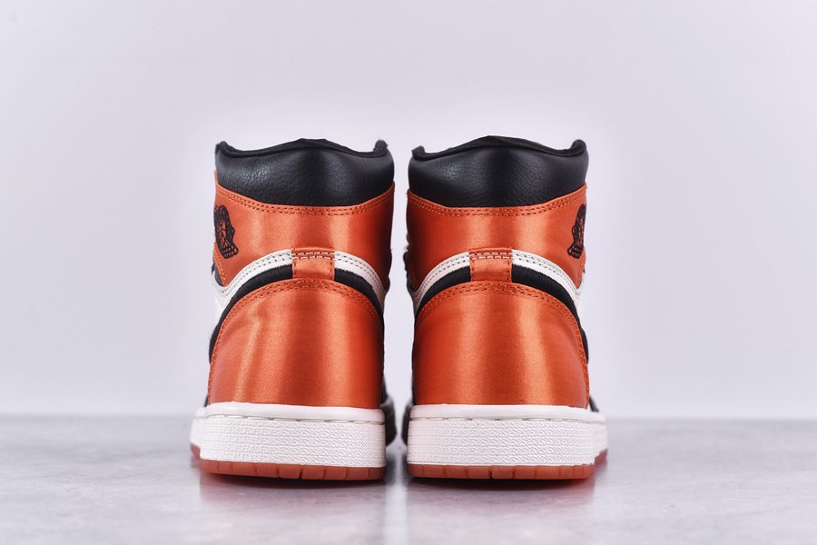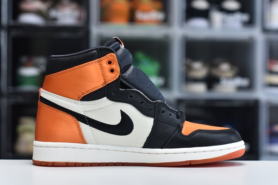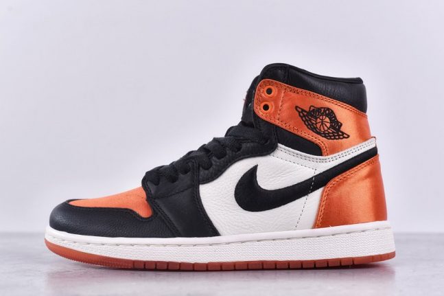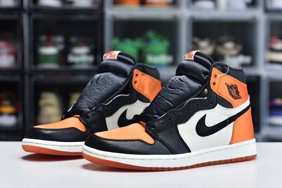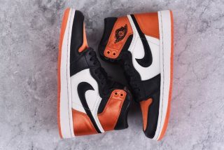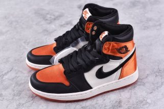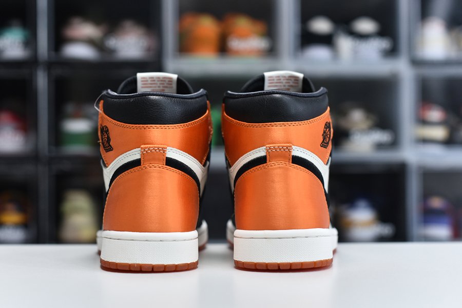 The color theme on this Air Jordan 1 was made famous by the 2015 release that features Black, Starfish and Sail. Featuring Black around the toe, eyestays and collar while White lands on the panels and midsole. Completing the look is Orange while being constructed with Satin.