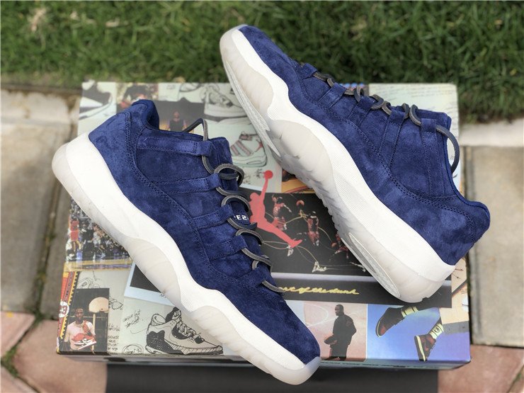 This Air Jordan 11 Low Derek Jeter comes constructed in the same Navy Blue suede upper and waxed laces for a premium look. A White midsole and milky translucent outsole completes the design. Other details includes Jeter’s number 2 stitched on the heels, along with “RE2PECT” and “2” on the insoles.