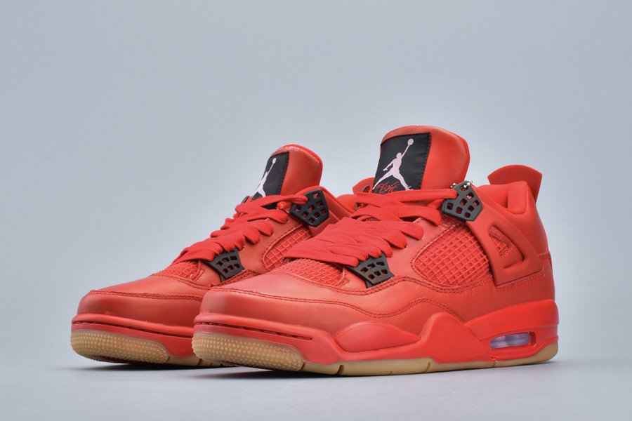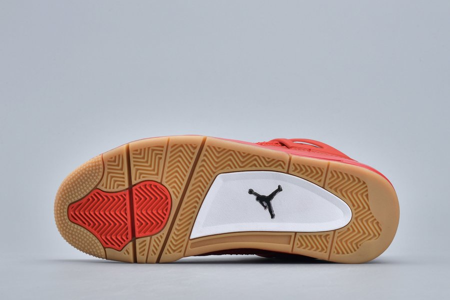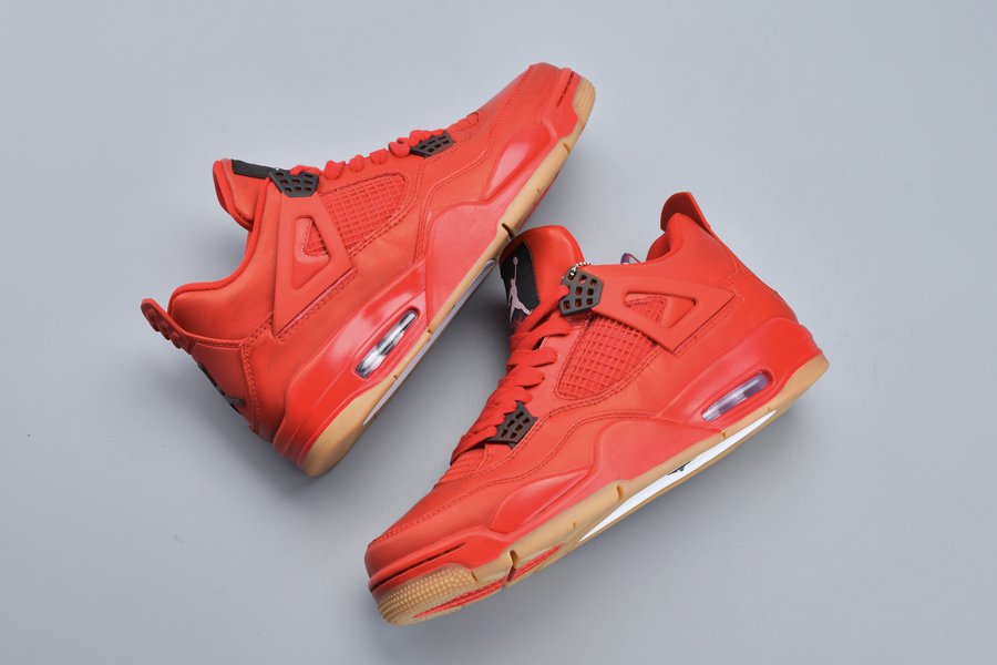 The Air Jordan 4 Retro NRG “Singles Day” celebrates the holiday with a leather build that’s entirely finished in Fire Red. In addition to a gum rubber outsole, the shoe features contrasting pops of black on the tongue tag, eyelets and Jumpman logo on the heel. The red coating on the upper is designed to eventually wear away, revealing an ornamental design underneath.