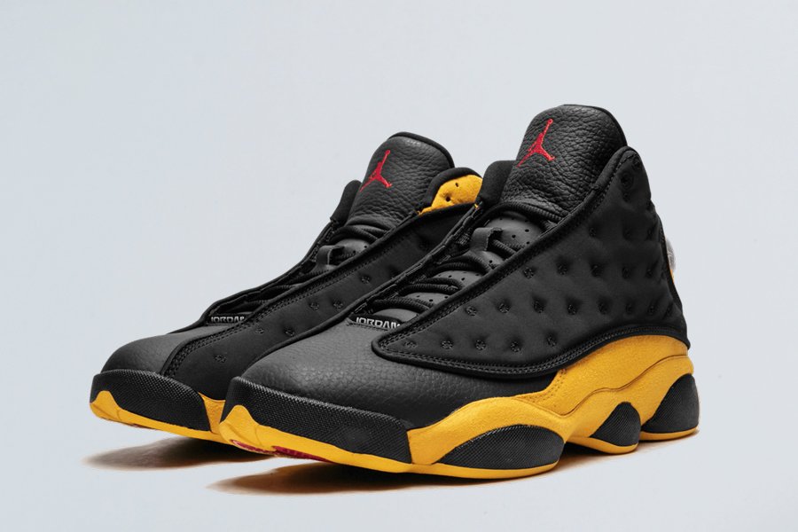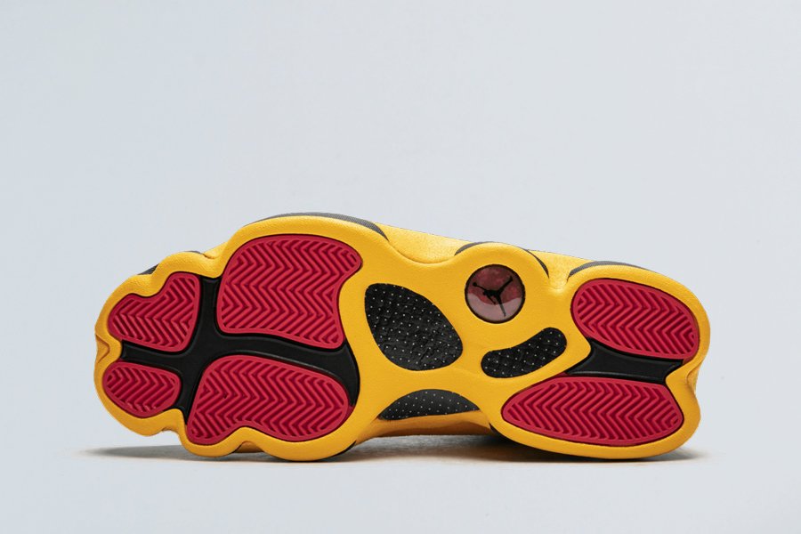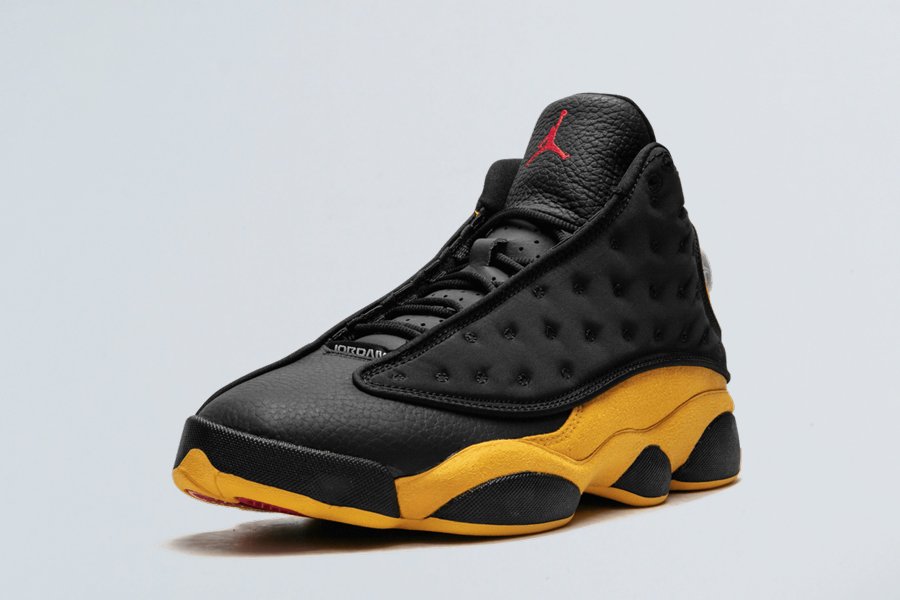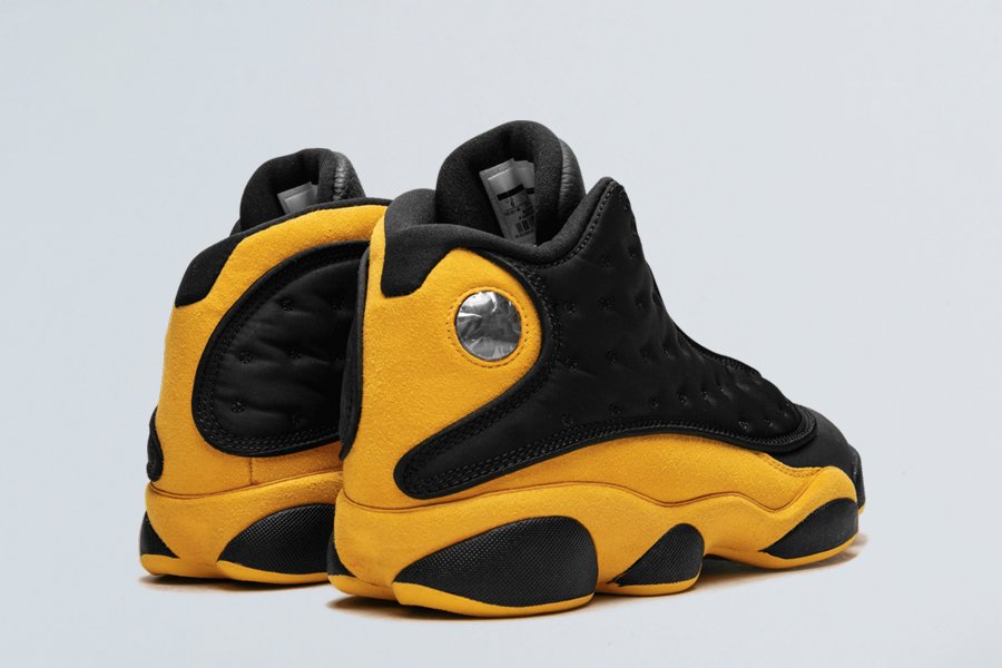 This Air Jordan 13 comes dressed in a clean Black, University Red and University Gold color theme. Constructed with both leather, suede and nylon, they also feature ‘Class of 2002’ on the left insole while Melo’s logo is applied to the right insole.