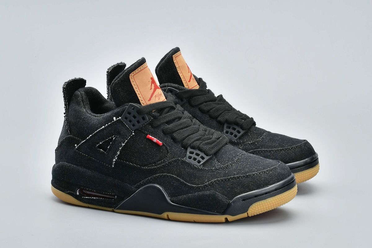 Taking the tonal route just like the other two pairs, this Air Jordan 4 in collaboration with Levi’s features a full denim construction on the upper in black with tan/red signature Levi’s detailing on the tongue, side panels, and the hang tag. A black denim midsole, black eyelets and laces, and a gum rubber outsole round out the look.