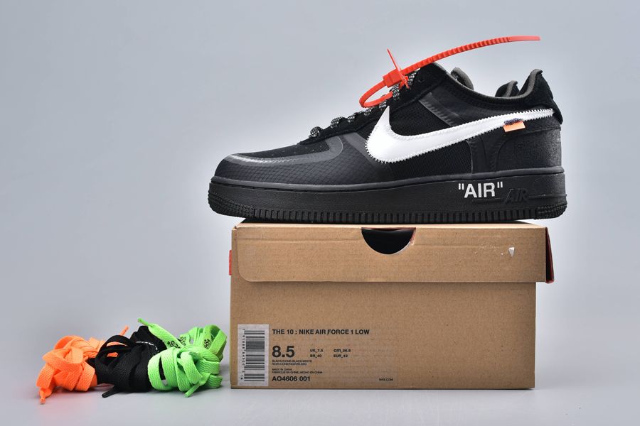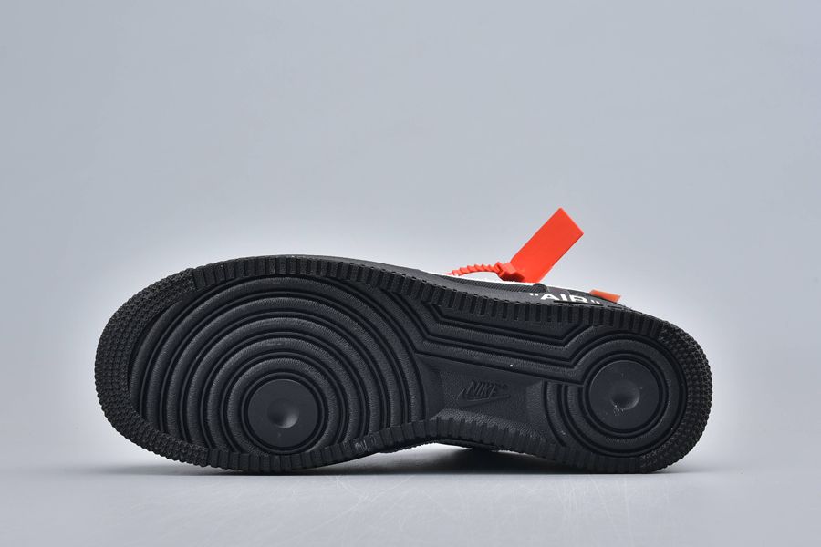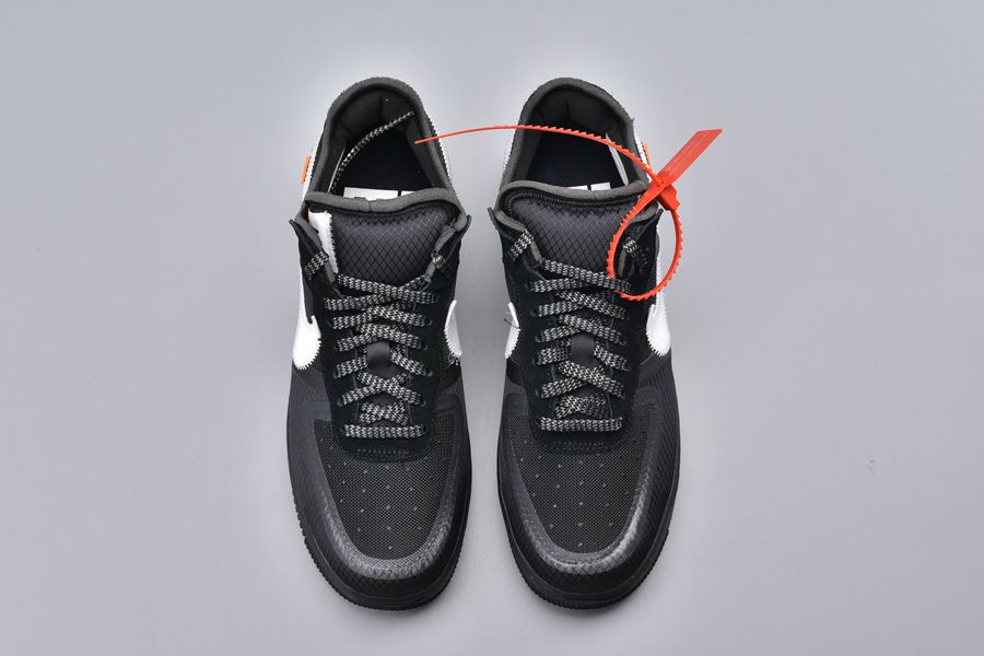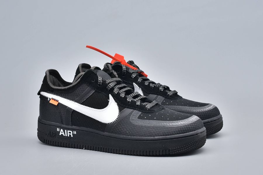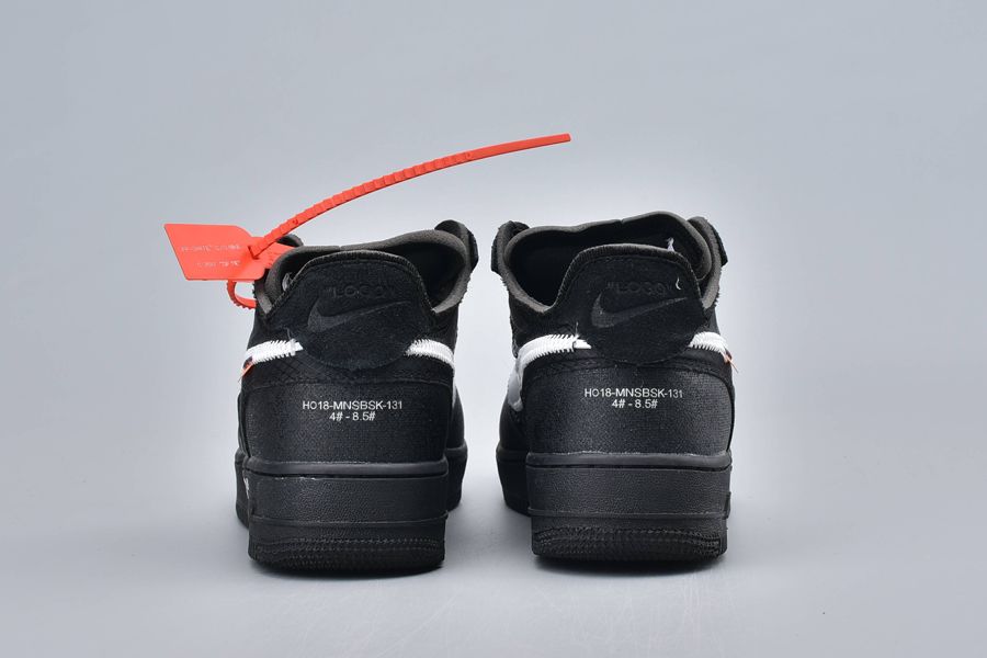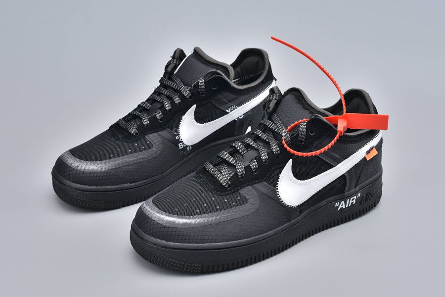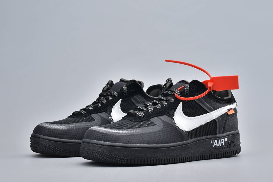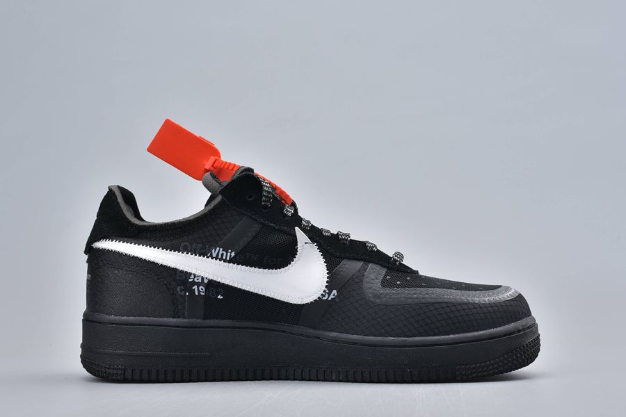 This particular pair has similarities with this contemporary AF 1. The essential common feature is the blacked-out matte upper. But it’s crafted with highly engineered materials like synthetic leather and neoprene. The textures are incredibly artistic! A white mega Swoosh is also familiar. The red-hot Off-White cable-tag and the tiny orange tab add the classic vibes to this contemporary aesthetic.