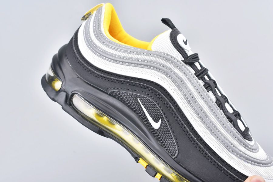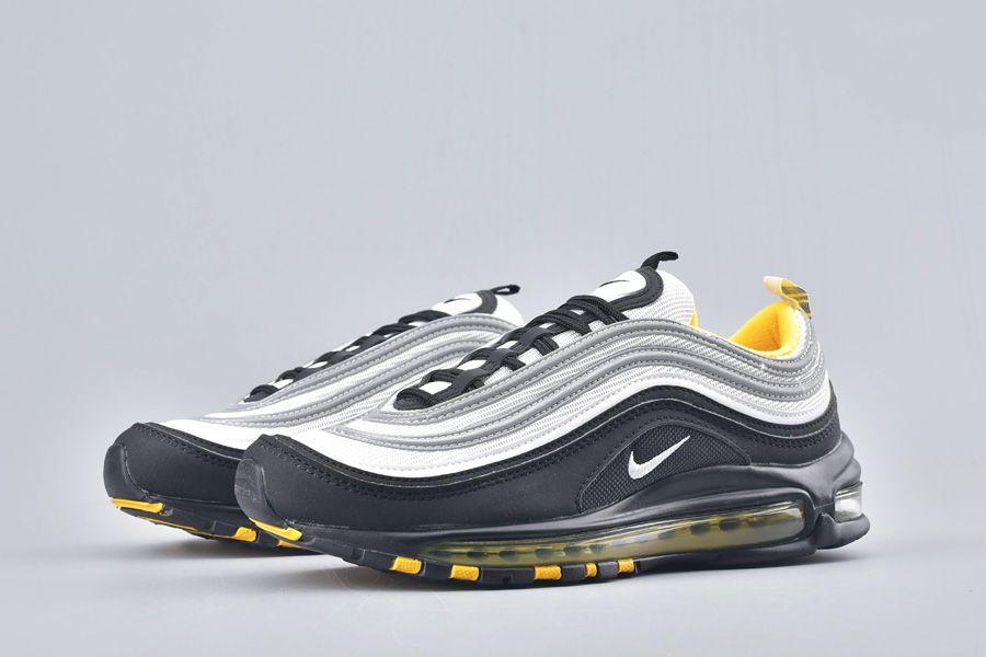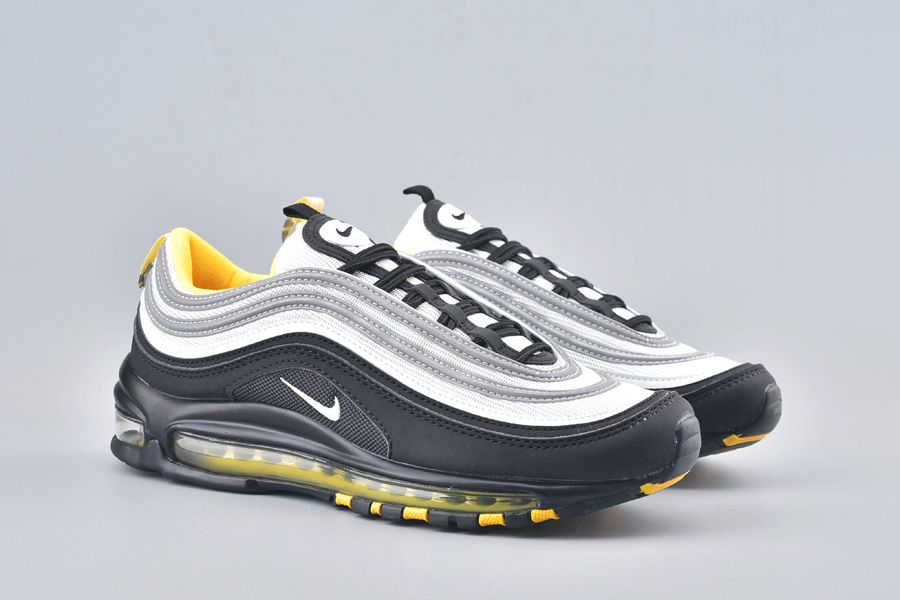 Nike Air Max 97 has returned with a new colorway offering. One of the most popular Air Max models sees a mix of black and silver throughout with subtle yellow accents found on its inner lining and full-length Air Max unit. The bottom half of the upper is designed with black as the top alternates grey and reflective silver throughout its piping. Branding finishes things off on the tongues, heels and each lateral and medial side.
