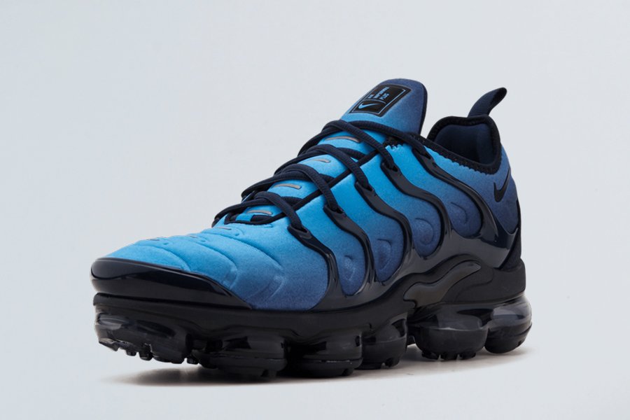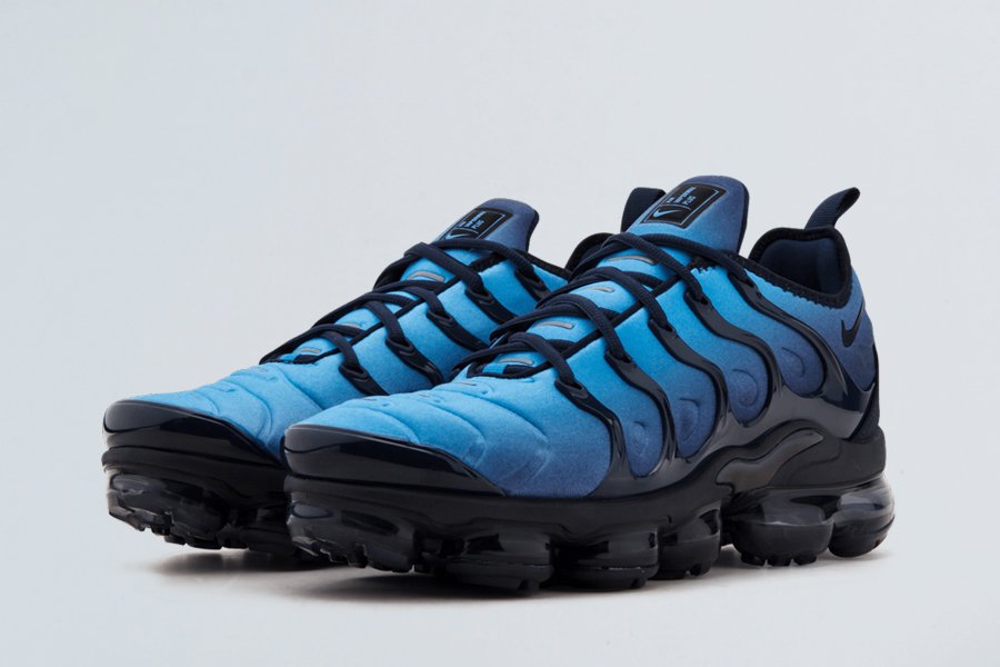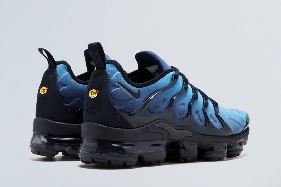 Taking two classic Air Max silhouettes and combining them, the Air VaporMax Plus ‘Photo Blue’ features a Photo Blue neoprene gradient Air Max Plus upper with a molded Obsidian Blue TPU cage. The sneaker sports 3M reflective detailing on the tongue, ‘Vm Air’ heel branding, and an Obsidian Blue foam midsole with a matching translucent VaporMax outsole.