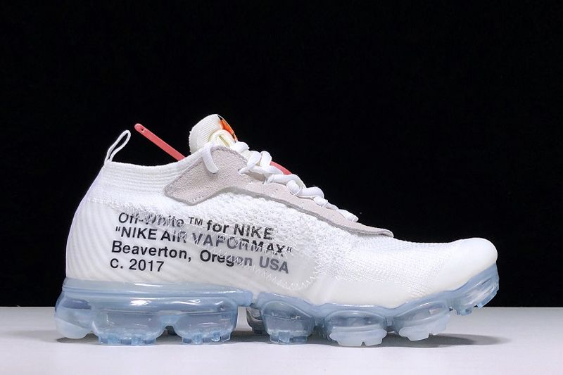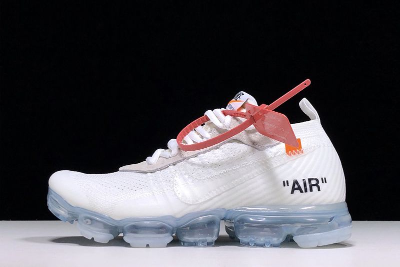This Off-White x Nike Air VaporMax comes done in a white Flyknit all throughout the upper with cream nubuck detailing on the eyestay. Additional features include a deconstructed neoprene tongue, OFF-WHITE branding on the medial side panel, the signature red zip-tie hangtag, and an icy blue translucent VaporMax sole unit.