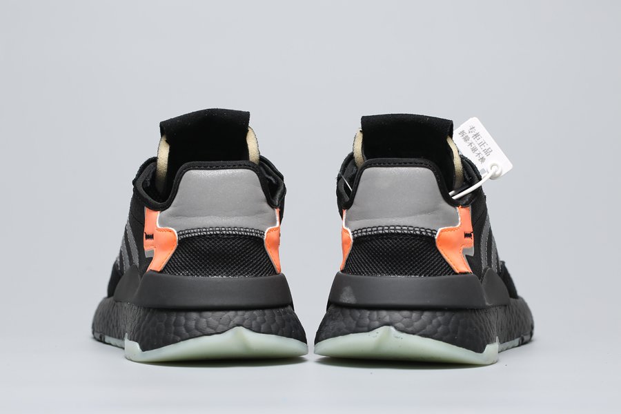 The Boost midsole bellow foot will soon be supplying you with infinite power, as adidas’ most responsive cushioning . This midsole fits in with the remainder of the sneaker, coming in a fitting black tone. Orange detailing can be viewed close to the foot box and about the heels, compared with additional reflective squares around the heels of this sneaker.