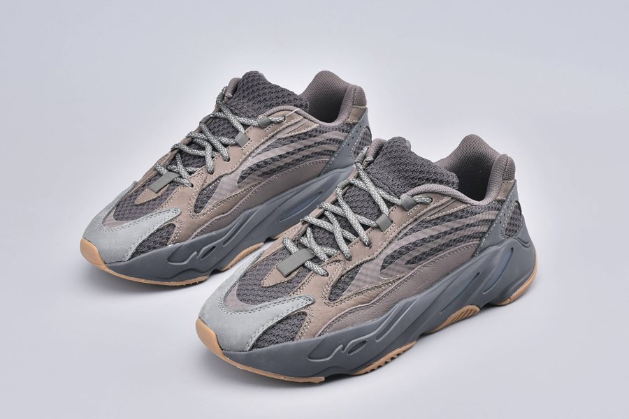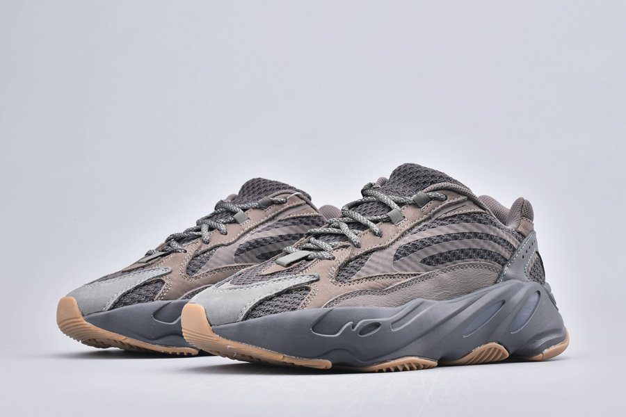 Painted in an earthy palette, with various shades of brown and grey featuring throughout, the Yeezy Boost 700 V2 Geode is crafted from leather and mesh, and sits atop a chunky Boost-infused midsole which is finished off with a tough and durable gum rubber outsole underneath.