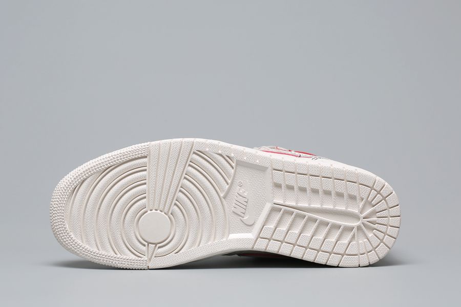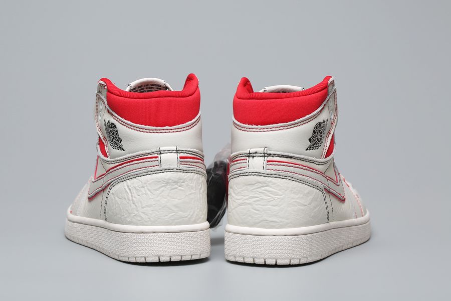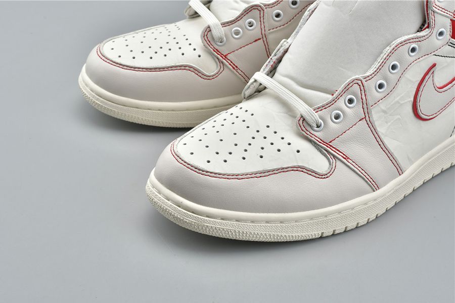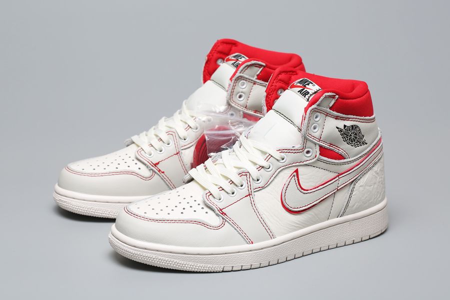 The pair sports a Sail leather upper with bright red detailing used on the ankle collar and backdrop of the Swoosh. Black and red contrast stitching outlining each panel of the upper gives this design an artistic touch that resembles the various customs crafted by artist Joshua Vides. Other details on the pair include a black Wings logo on the lateral ankle flap, jagged stitching at the top of each tongue, and a retro-inspired Nike Air logo on the tongue tag.