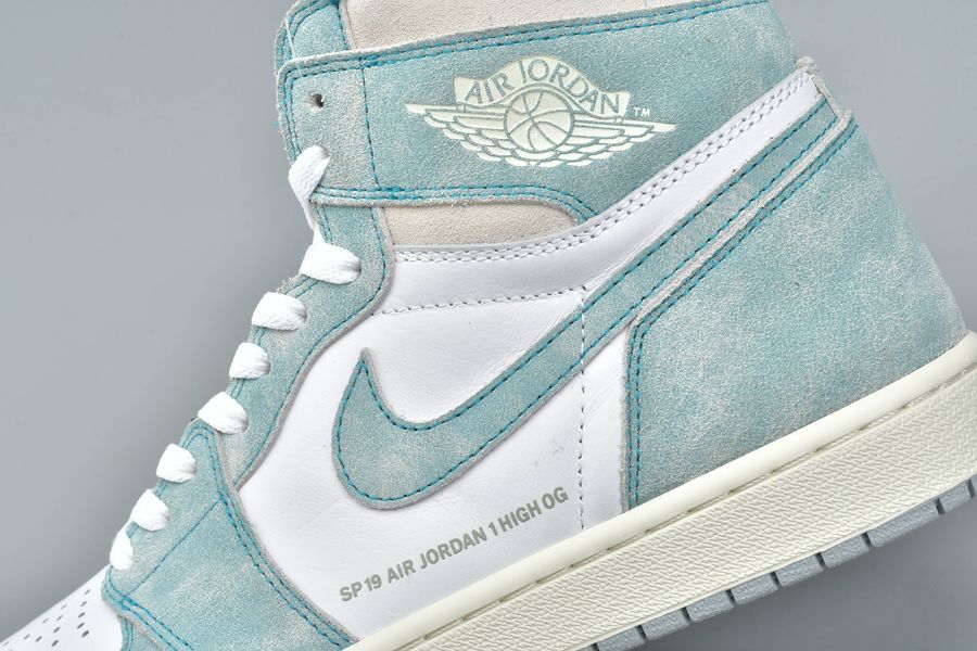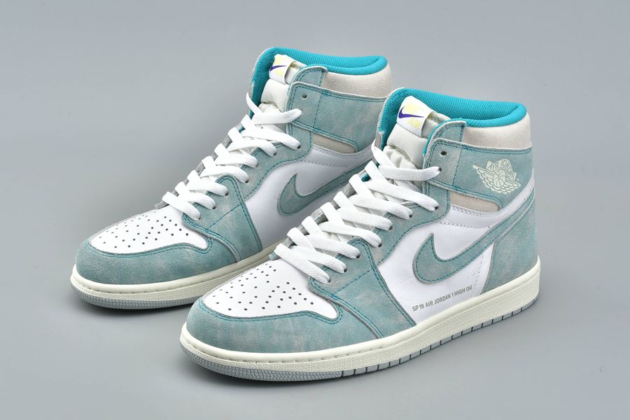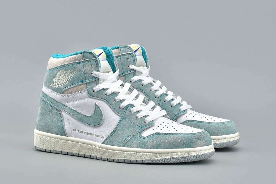 Sporting a distressed aesthetic and color blocking similar to that of the revered Jordan 1 “Chicago” colorway, one of this model’s standout new looks is its “SP 19 Air Jordan 1 Retro High” hit featured on its lateral and medial panelling, pointing toward the season of its release date. Other than its attractive Turbo Green coloring around its overlays, this Jordan 1 features a yellow and purple tongue tag, with the former coming on the Nike Air portion and the latter on its Swoosh. Combining fine suede and tumbled leather, a number of 2019’s first AJ1 varieties will boast an upgraded, premium vibe.