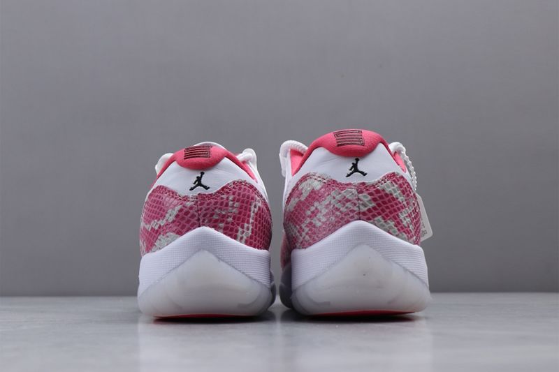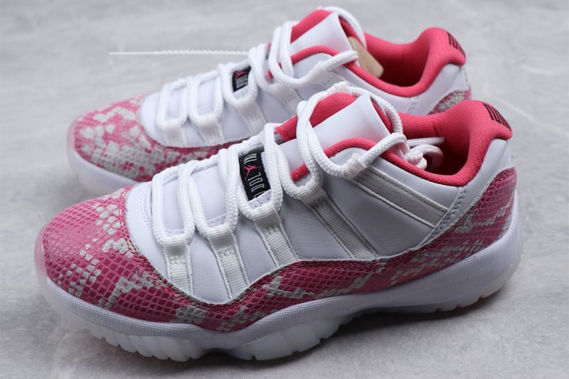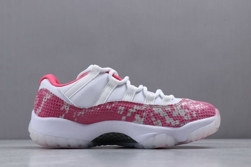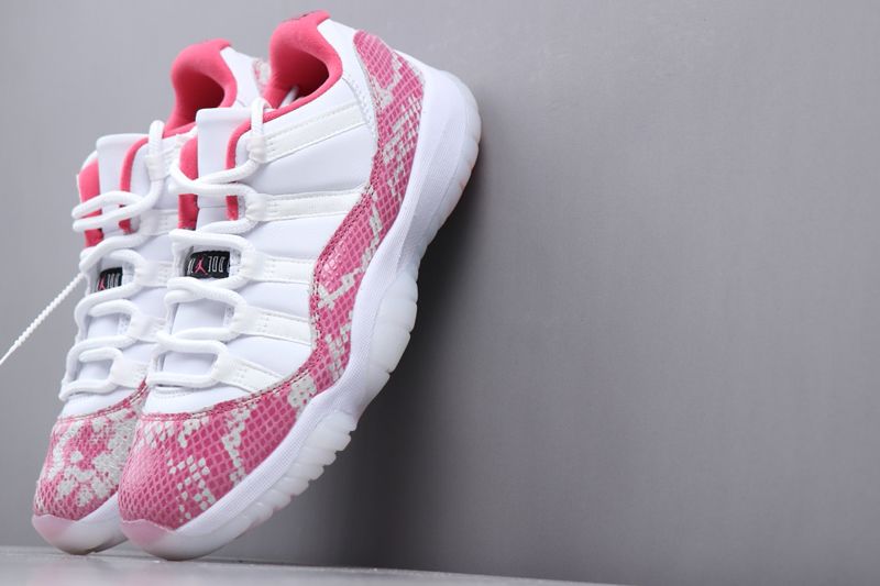 This variation Air Jordan 11 comes with White leather across the upper while Pink Snakeskin lands on the mudguard and wraps the entire shoe. In addition we have a lighter shade of Pink on the Jumpman branding and across the liner and areas of the outsole. Finishing the look we have Black on the tongue and a milky translucent outsole.