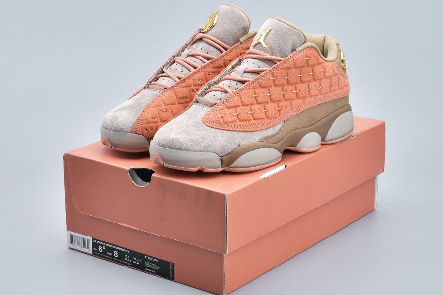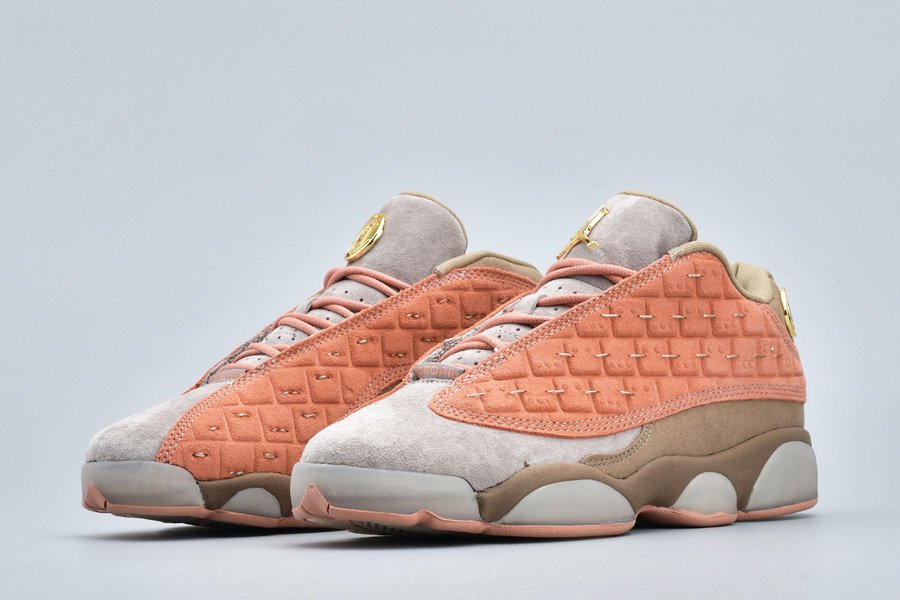 Continuing to bridge Eastern and Western culture, founders Edison Chen and Kevin Poon dress the court model in a new mixture of brown and grey premium suede, referencing the sculptures found in the first Emperor of China’s mausoleum. The outer panels found on the upper are embossed and stitched to replicate the rectangular plates found on the lamellar armor of the famed Terracotta Army. Branding comes in the form of metallic gold CLOT and Jumpman logos found on the tongues and heel areas. The elevating sole unit continues the tones of the upper and is accented by translucent midsole segments and a CLOT bubble at the carbon fiber torsion plate.