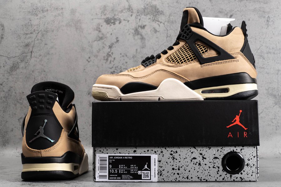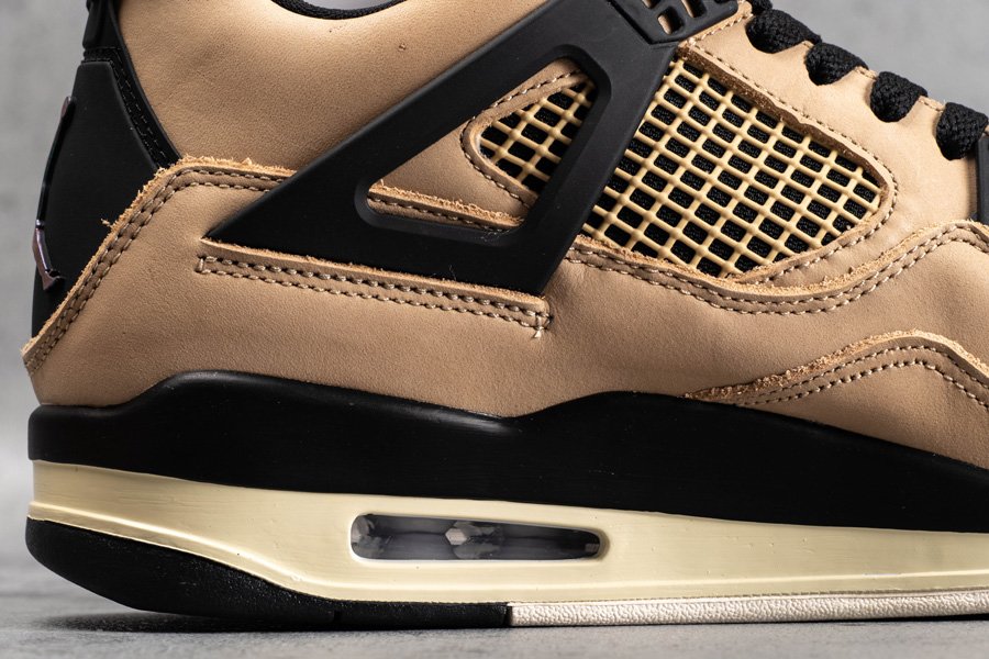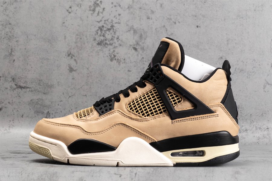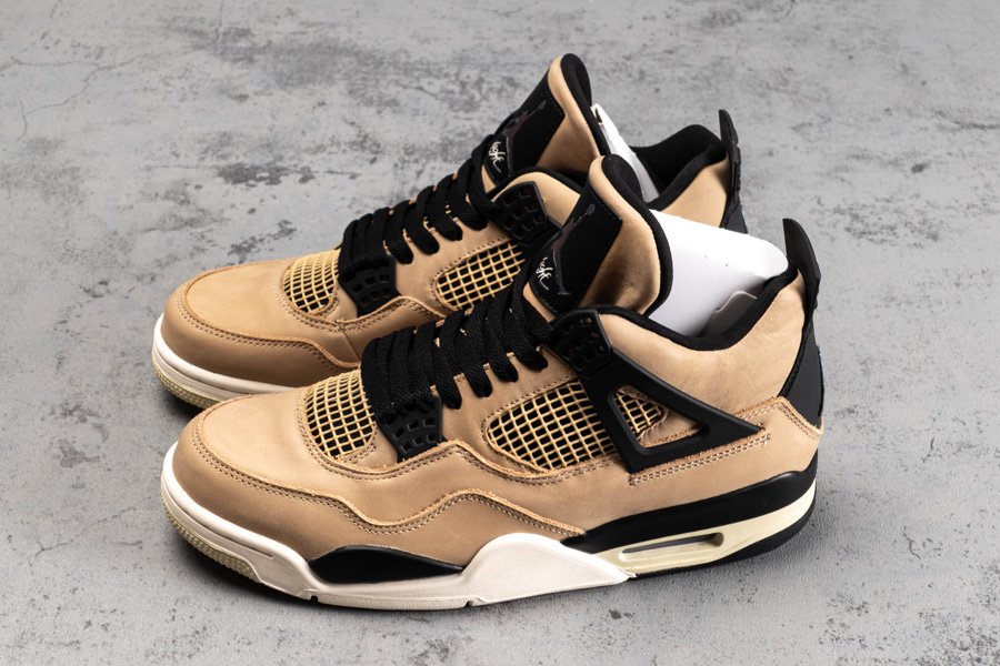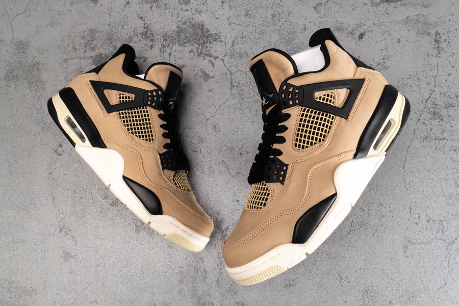 Dubbed the Air Jordan 4 Mushroom, this iteration of the model opts for a bit of a premium look at it comes dressed in a Wheat suede upper contrasted by the Black hits noted on the wings, netting underlay, eyelets, liner, tongue tab, heel tab, and outsole. Adding some pop to the shoe are the iridescent hits noted on the Jumpman logo on the tongue and heel. Below you will find a Sail midsole and hits of Cream on the rubber outsole.