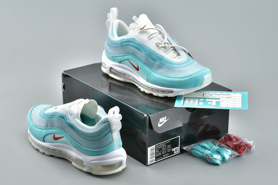 Building on a white base, bold blue panels feature throughout for a pop of contrast. Inspired by Ru’s impression of the clouds floating along Shanghai’s skyline as they shift and dissipate to create new forms and shapes, an ultra comfy Air unit down below helps to emphasise the shoe’s cloud-like properties. Interestingly enough, this stand out pair also makes use of double tongue tabs and triple heel tabs for a look that’s bound to turn heads for many years to come!