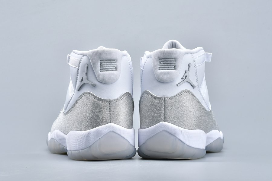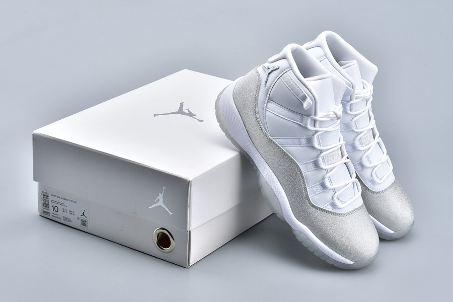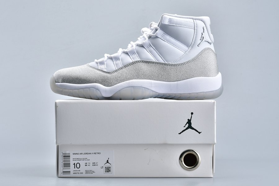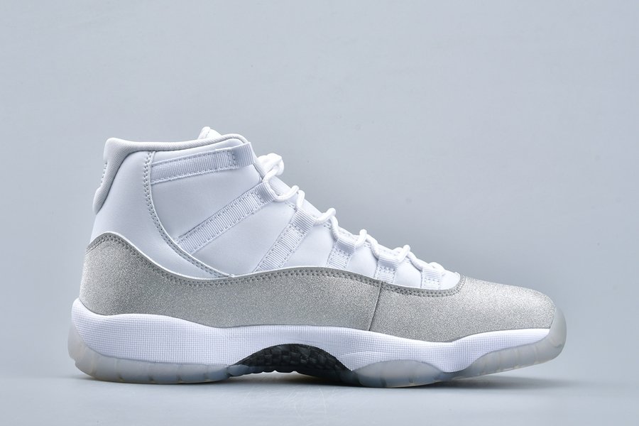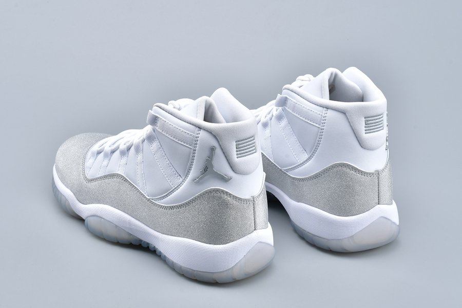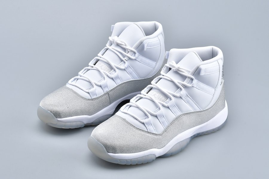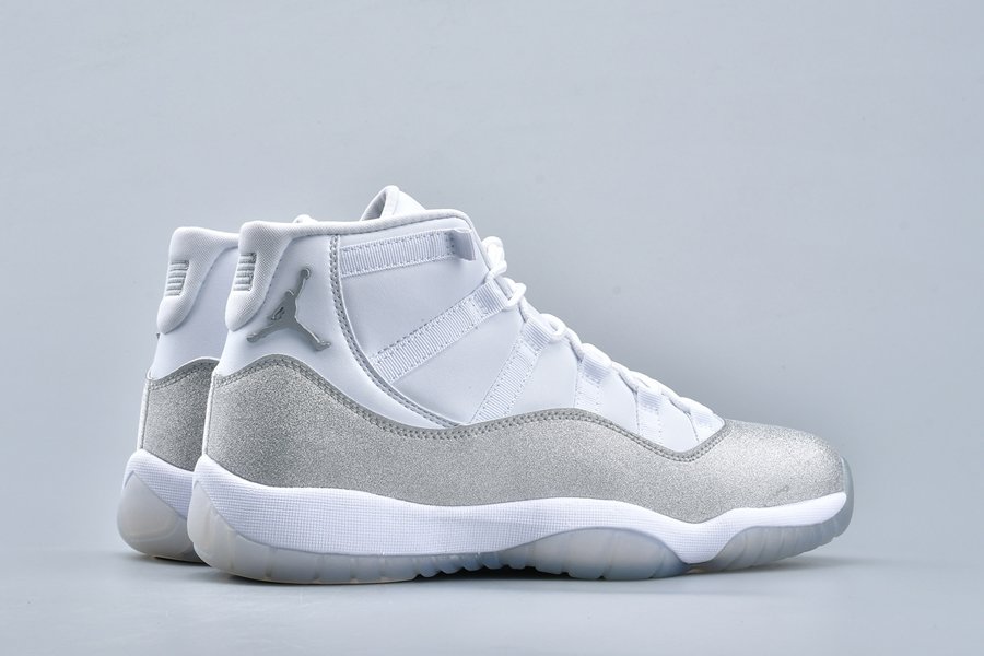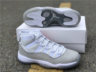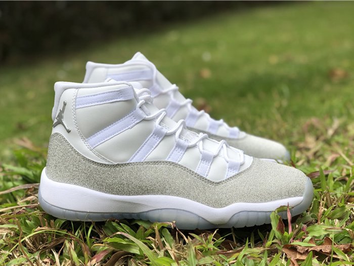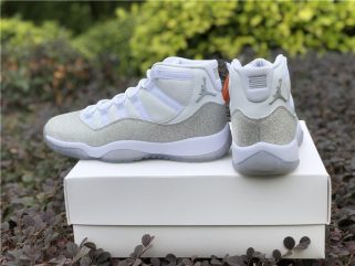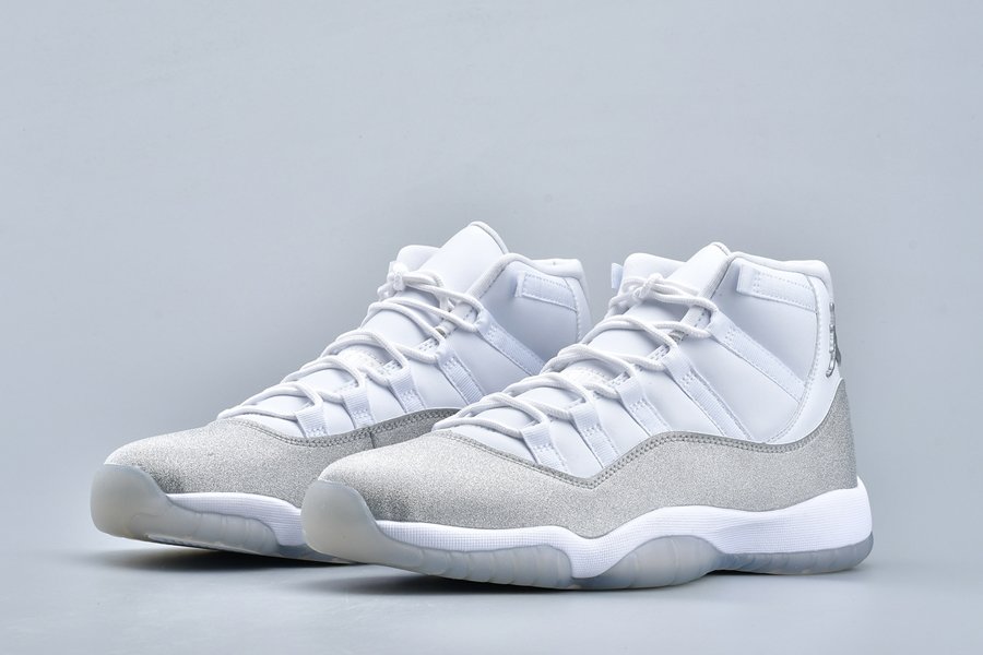 This women’s-exclusive variation of the Air Jordan 11 is covered in an official theme of White, Metallic Silver and Vast Grey. This elevated rendition of the sneaker dons a white leather upper while the traditional patent mudguard is upgraded with a shiny, glittered silver finish instead for a luxe lifestyle theme. Finally, a white midsole and lightly tinted translucent outsole tops off the design.