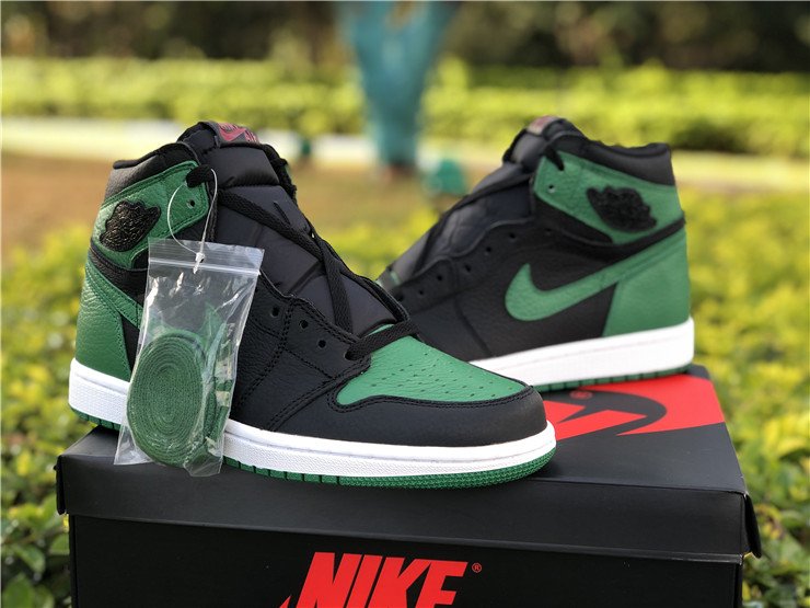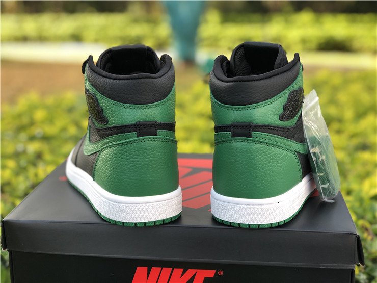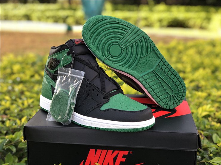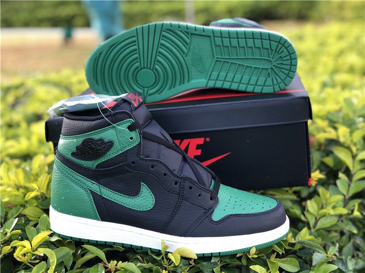 The Air Jordan 1 High “Pine Green” is the high-top version of Michael Jordan’s first signature model in yet another clean color scheme. Using the team uniform colors of the Boston Celtics as inspiration, the “Pine Green” makeup features a premium black leather base on the mid-panel, forefoot and collar. Green leather on the Swoosh, perforated toe, ankle collar, and heel contrasts the look. A blacked-out Wings logo can be found on the collar with contrasting red Nike Air detailing on the tongue tag. The colorway is finished off with a classic white rubber midsole and Pine Green outsole.