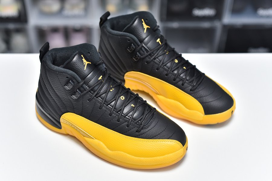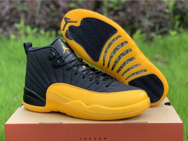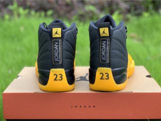 The 2020 Air Jordan 12 “University Gold” 130690-070 is very similar to the Gary Payton’s player exclusive “Away” Air Jordan 12 version during his tenure with the Los Angeles Lakers in 2003-04. Defined by a two-tone color scheme, black tumbled leather is offset by University Gold on the signature leather mudguards, as well as on the branding on the tongue, heel, and the rubber outsole.