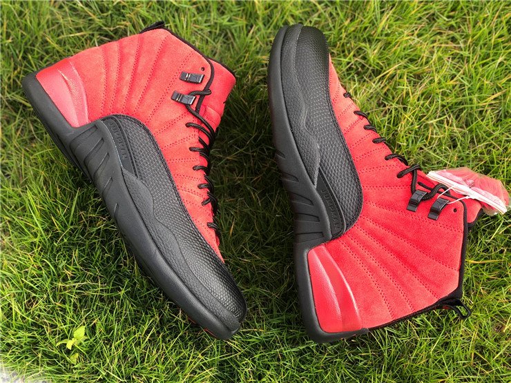 This Air Jordan 12 comes dressed in a Varsity Red and Black color combination. Taking on the ‘Alternate’ look of the ‘Flu Game’, this pair will instead use Red suede across the upper while Black covers the branding, eyelets, laces, liner, midsole, mudguard, heel and rubber outsole.