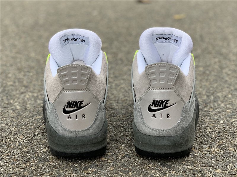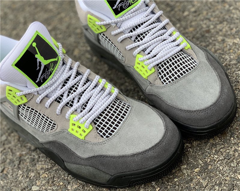 The Air Jordan 4 Neon (Air Max 95 Neon) is a new variation of the silhouette which pays homage to another classic Nike silhouette. This Air Jordan 4 is inspired by the iconic Air Max 95 “Neon” edition. Mimicking the runner’s OG colorway, the AJ 4 is draped in a combination of Cool Grey, Volt, Wolf Grey, and Anthracite hues, while also bearing the same material makeup with suede panels and mesh accents across its upper. Finally, the distinct volt accent is prominent on the eyelets, tongue labels and outsole to top it off.