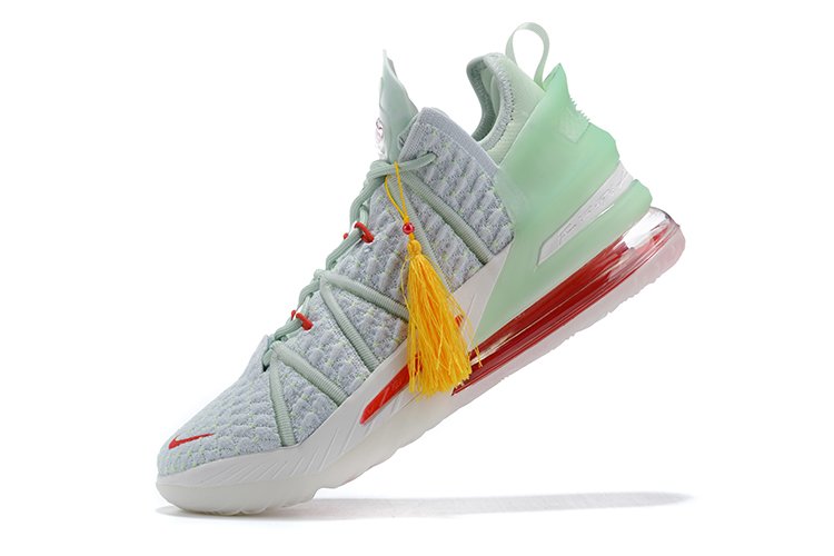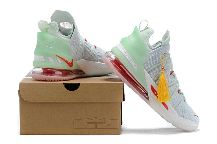 This Nike LeBron 18 “Empire Jade” is inspired by the iconic emperor’s stamp, as its light jade uppers are complemented with red accents throughout. Additionally, the heel overlay bears the same pastel hue, while a gold hassle punctuates its design elements.