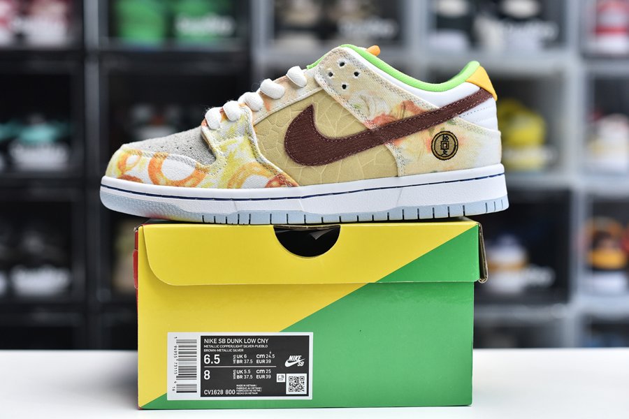 Immediately catching your attention, this Nike SB Dunk Low takes on the mismatched look and celebrates the Chinese New Year holiday while also commemorating the Year of the Ox. The shoe comes dressed in a Metallic Copper, Light Silver, Pueblo Brown, and Metallic Silver color scheme. Helping the shoe stand out is the use of materials found on the upper, which include textured panels and graphics topped off with Metallic detailing. The shoe even uses shaggy suede on the left toe. Other CNY tid-bits come by way of the Chinese token embroidered on the lateral ankle of the left shoe, along with Chinese character on the heels.