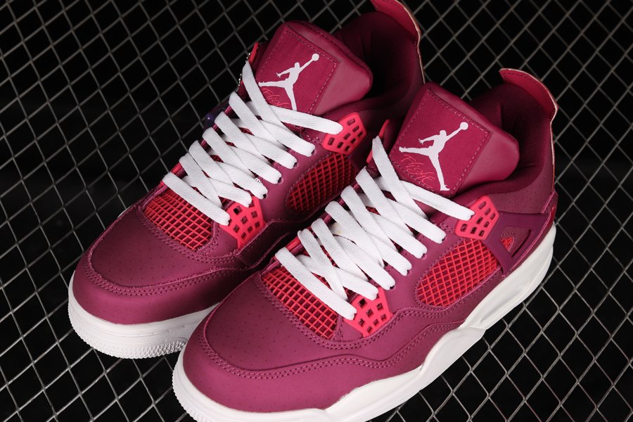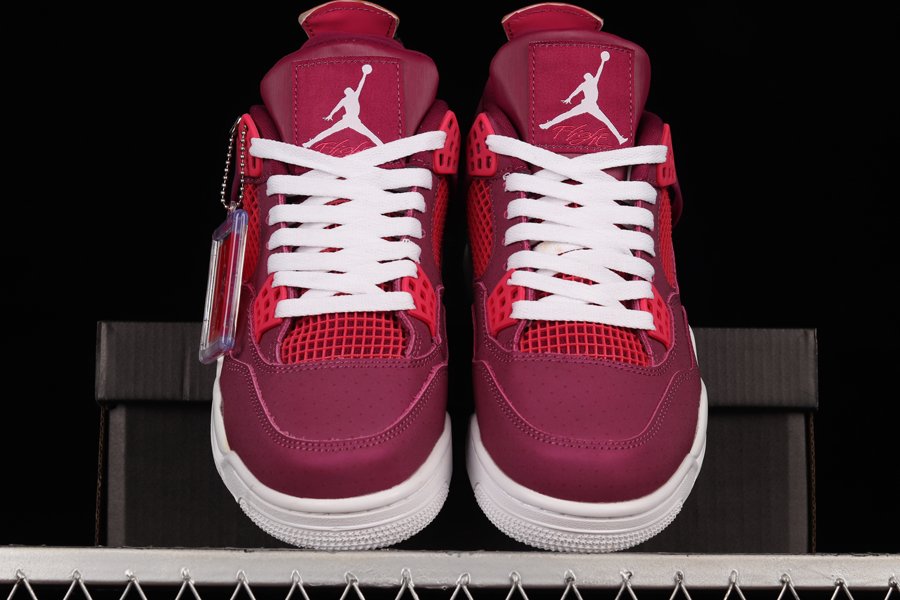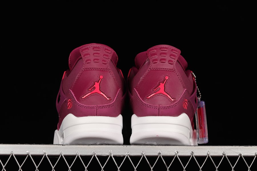 Sporting an official color scheme of True Berry, Rush Pink and White color scheme, the classic sneaker is coated in the burgundy-like berry hue for its leather upper, along with accents pink used for the eyelets, netted underlays, “For the Love of the Game” heart embroidery logo on the heel and Jumpman branding on the rear. Finally, a white rubber sole air cushioning in the heel completes the style.