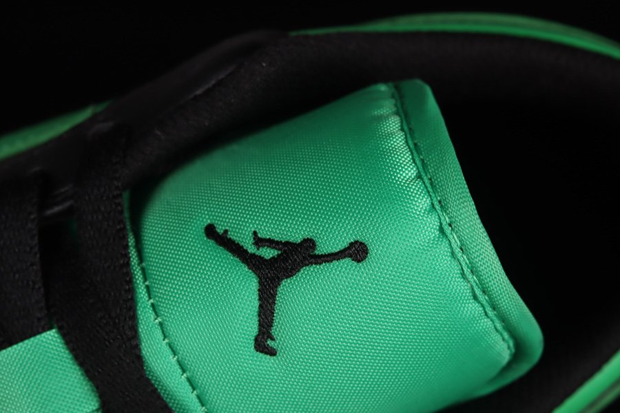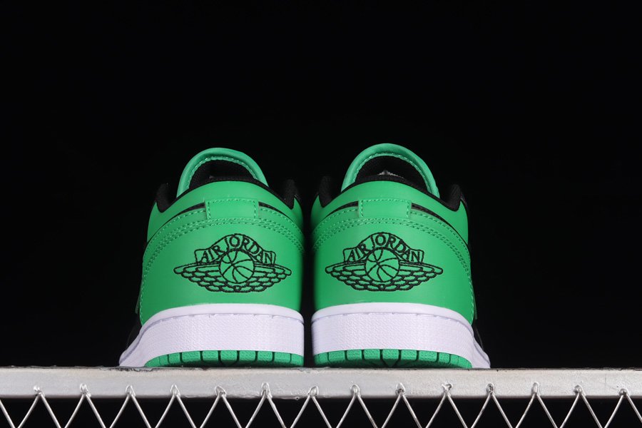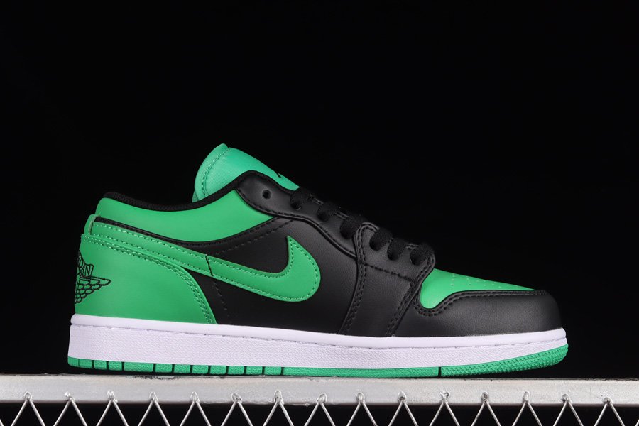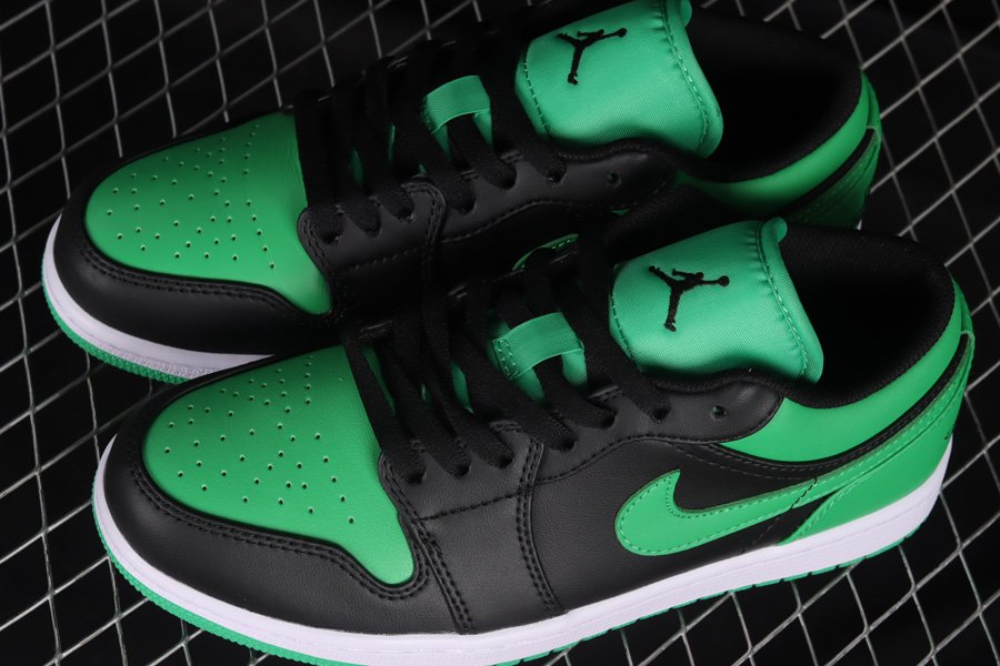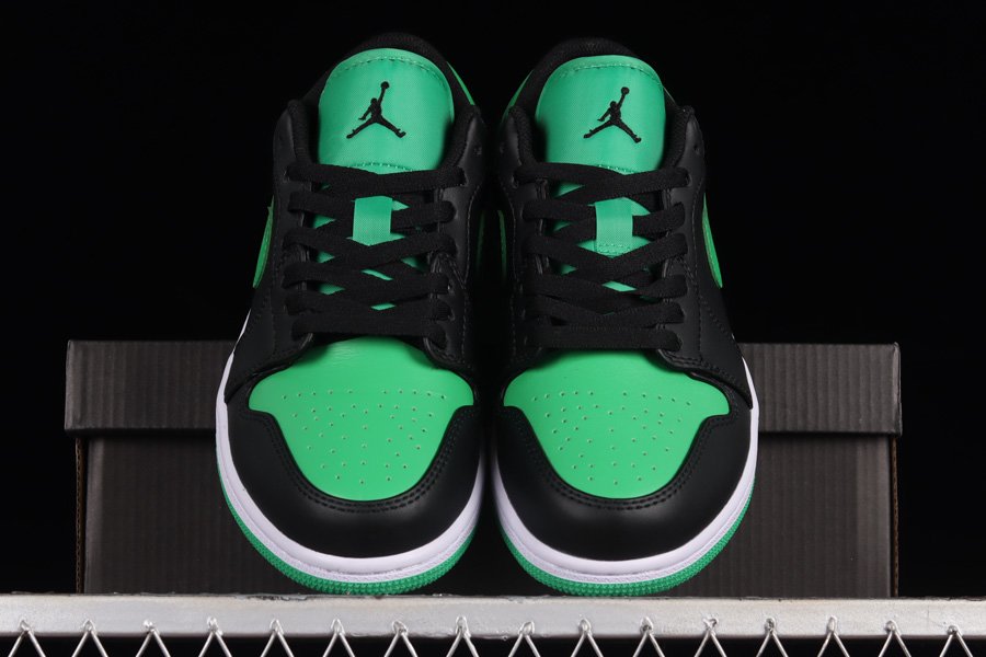 Constructed out of a full leather build on the upper, this offering of the Air Jordan 1 Low combines Black and Lucky Green all over the upper with the same hues landing on the tongues, laces, branding, inner liner, and outsoles. Black Jumpman logos on the mesh tongues, Pine Green Swooshes on the side panels, and white rubber midsoles finish off the look on this Air Jordan 1 Low.