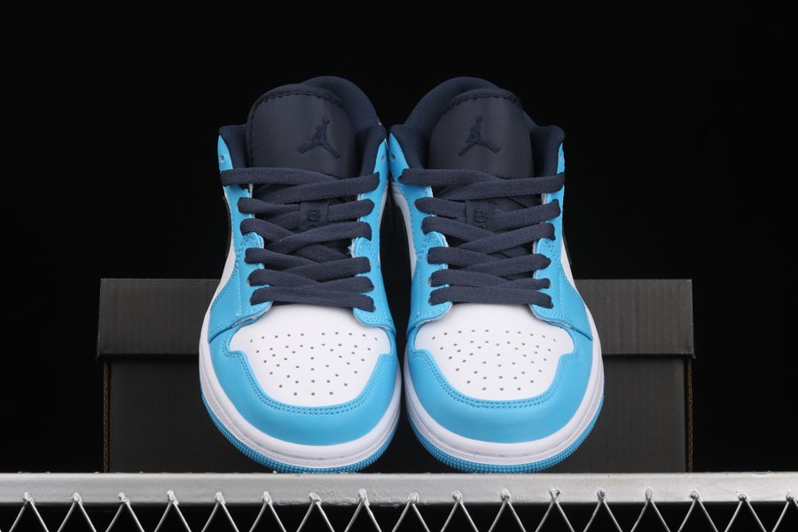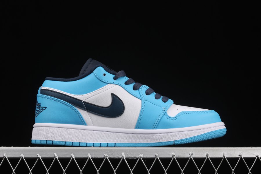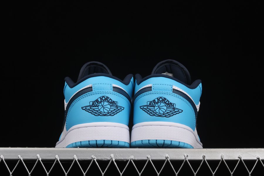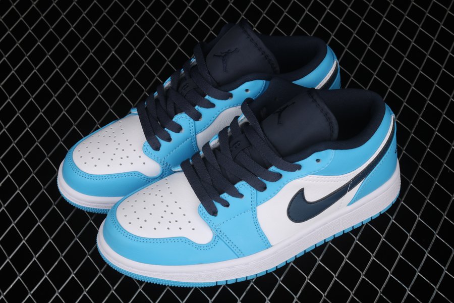 UNC vibes have landed on this new colorway of the Air Jordan 1 Low. Taking on a full smooth leather construction all over the upper, this Air Jordan 1 Low starts off with White on the side panels and perforated toe while the defining University Blue is placed all on the overlays as well as on the ankle, heel, insoles, and the Jumpman logos on the tongues. Navy is then seen on the tongues, laces, inner liner, the Swooshes on the side panels, and the embroidered Wings branding on the heels. To wrap things up we have white rubber midsoles and University Blue rubber outsoles.