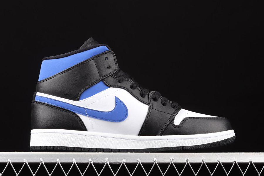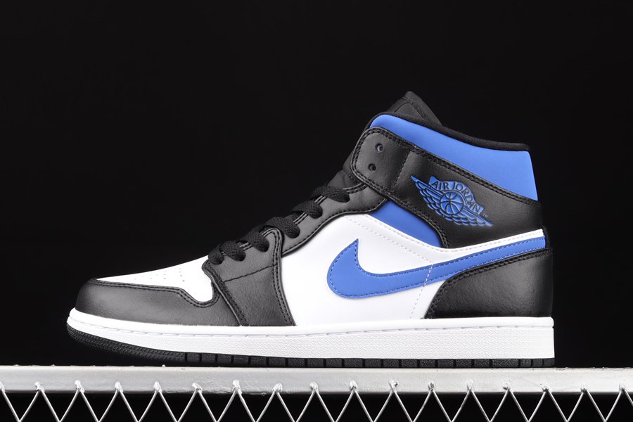The Air Jordan 1 Mid ‘Racer Blue’ applies OG-inspired color blocking to a mid-top variation of Peter Moore’s original 1985 design. The upper comprises a white leather base with contrasting black leather overlays and a suede collar in royal blue. The latter hue is repeated on the sneaker’s branding elements, which include a leather Swoosh, a classic Wings logo on the lateral collar, and a Jumpman icon on the woven tongue tag. Lightweight cushioning is provided by an encapsulated Air-sole unit nestled in the heel of the rubber cupsole.