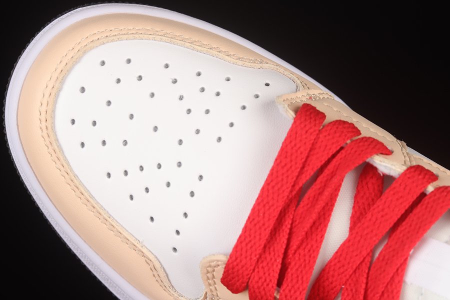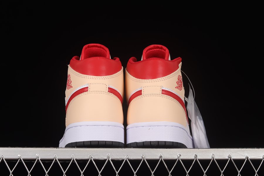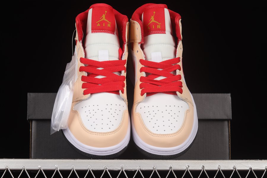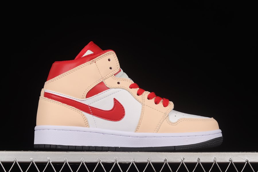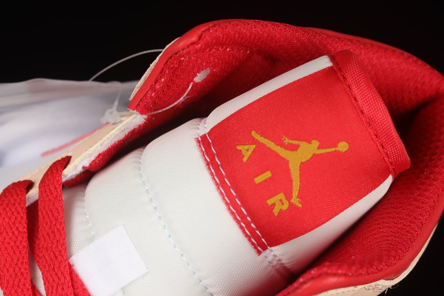 This mid-top Air Jordan 1 features leather throughout while White lands on the base and Beige covers the overlays. Red fills in the tongue label, laces, ankle, Swoosh, and Wings logo while a White midsole and a Black rubber outsole finish the look.