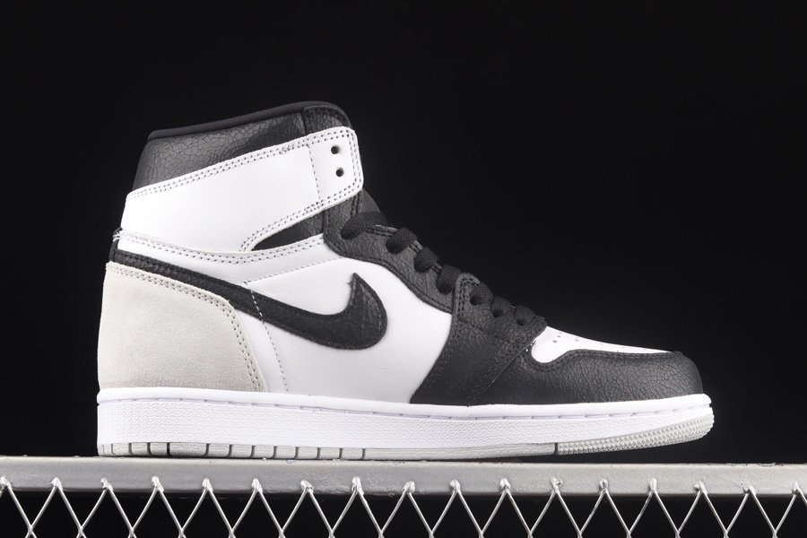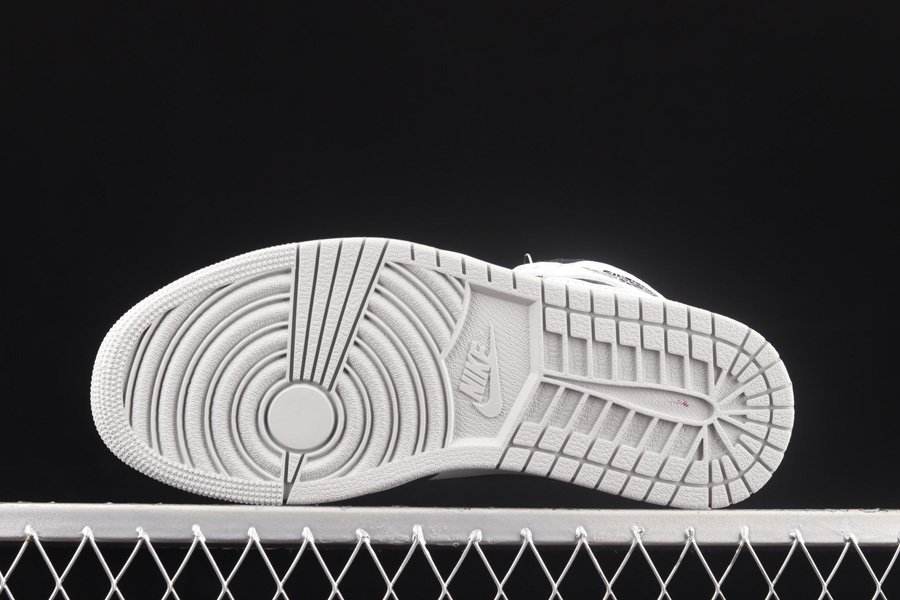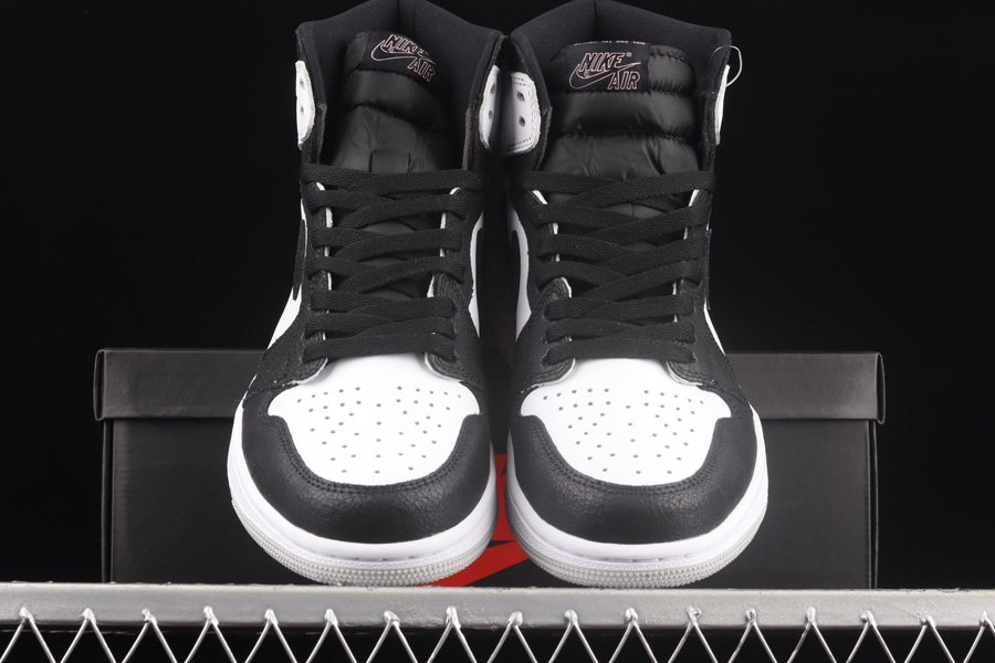 This Air Jordan 1 High OG has a simple colorway that has a White leather base and Black overlays. The heel counters and outsoles are highlighted in Pink. Finishing details include Black shoelaces, a Black Nike Swoosh, and Black Air Jordan Wings on the ankle strap.