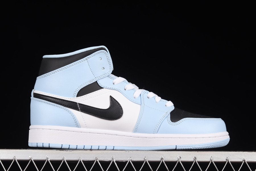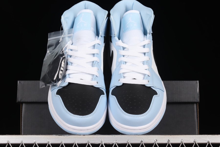 Covered in an official color makeup up of Ice Blue/Black-Sail-White, this Air Jordan 1 Mid colorway gets a full smooth leather construction on the upper with Sail hitting the side panels, Black on the toes and ankles, and Ice Blue all on the overlays. More Ice Blue detailing on the inner liners, White on the laces, tongues, and midsoles, black Swooshes, and blue rubber outsoles finish off the look on this Air Jordan 1 Mid.