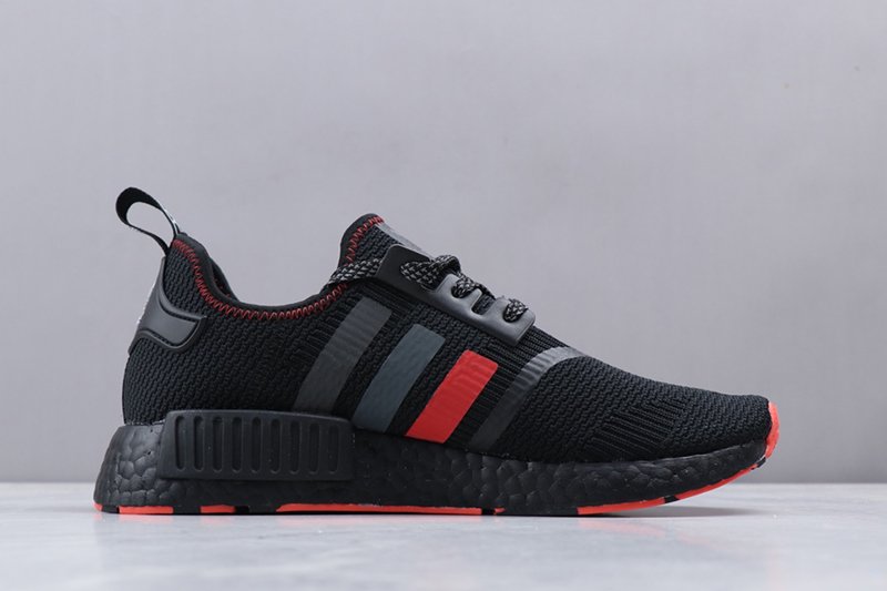 Coming dressed in a clean Black and Red color combination. Looking closer this adidas NMD features a Black mesh upper while Black, Grey and Red land on the Three Stripes branding. Following we have more Black, this time on the EVA pod overlays and Boost midsole while Red stitching is used. Finishing the look is both Red and Black marbleized outsole.