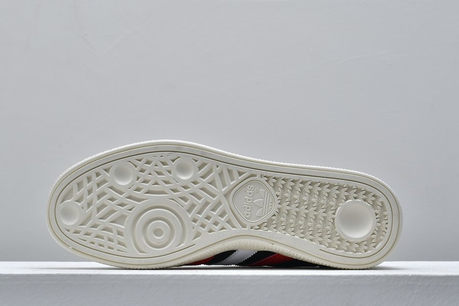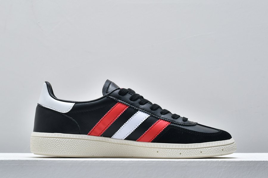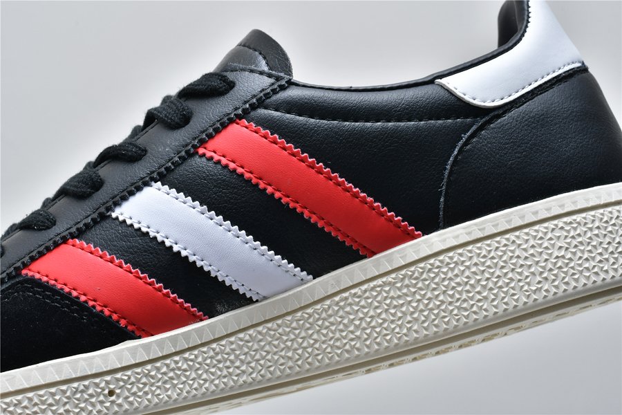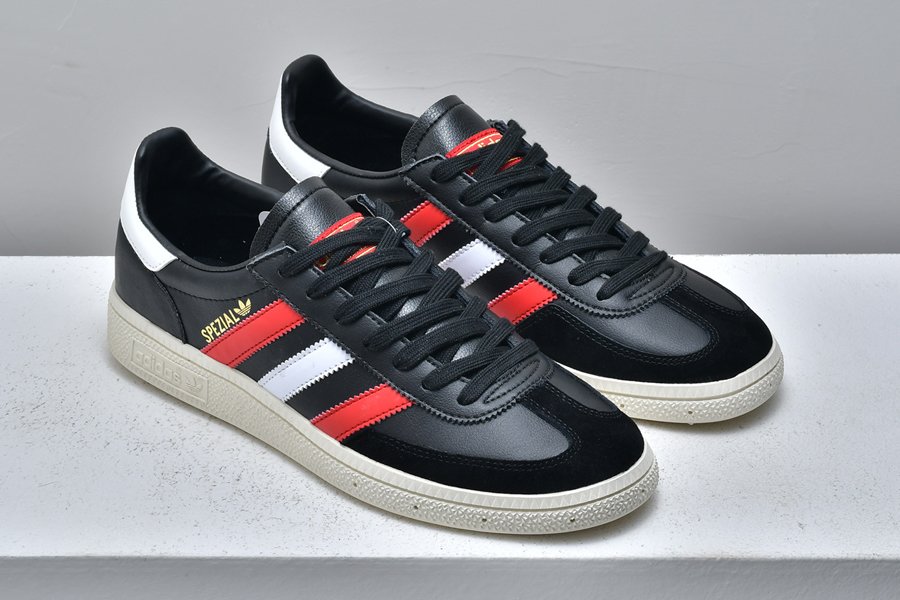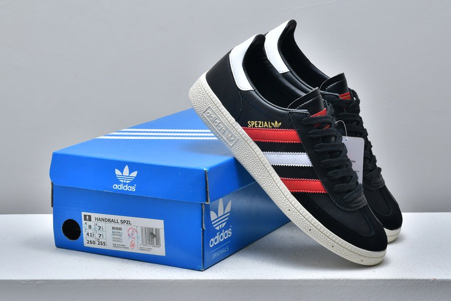 Get a classic adi look with these Handball Spezial trainers from adidas Originals. In a black colourway with white panelling, these statement kicks are made with a suede upper for a supportive wear and a premium edge. They have a padded ankle collar and tonal lacing system for a locked-in fit. They sit on a gum midsole that provides essential cushioning and keeps these trainers durable. With a grippy outsole for traction on the streets, these sneakers are finished with serrated 3-Stripes and golden Spezial branding to the sidewalls.