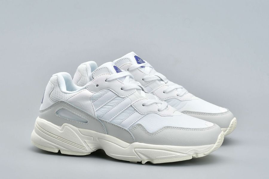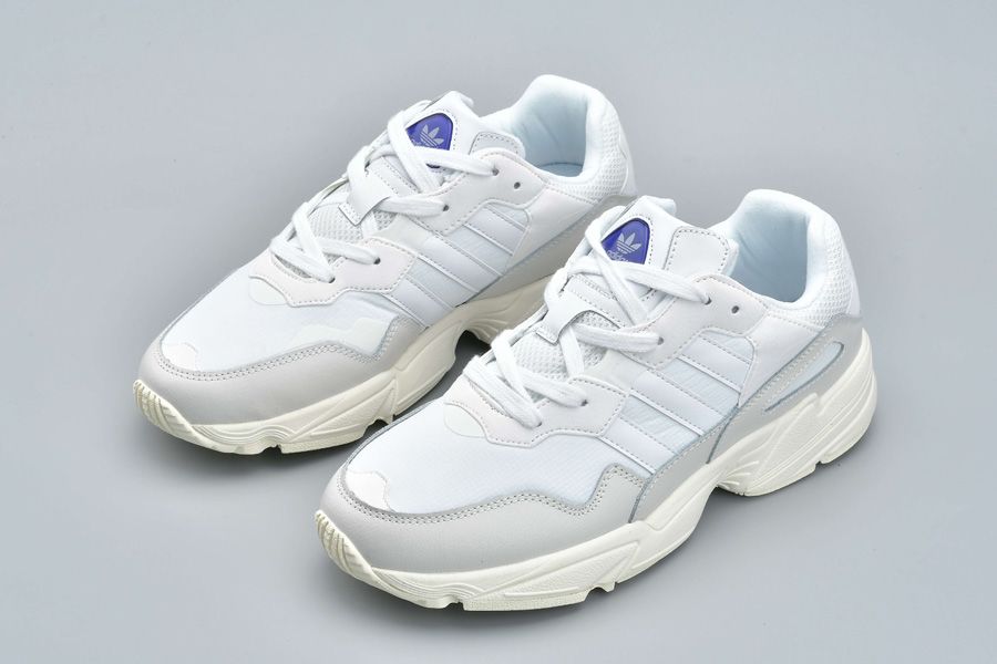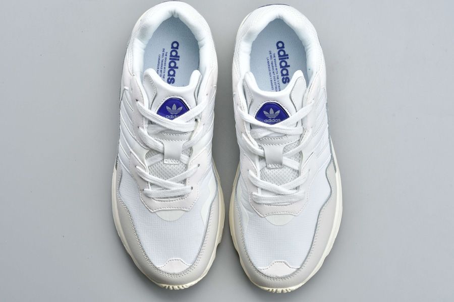 The construction can make you believe that it’s super hefty and weighty. But it’s as light as a feather instead! All credit goes to the high-quality materials that keep the shoe so light and yet so robust. Flexible mesh underlays make your feet snug and comfy while the leather overlays keep them safe from unwanted shocks. A dusty white suede layer on the top merges with ivory white leather three stripes and mudguard. A lush blue branding on the tongue and the rear contrast the tranquil colour palette.