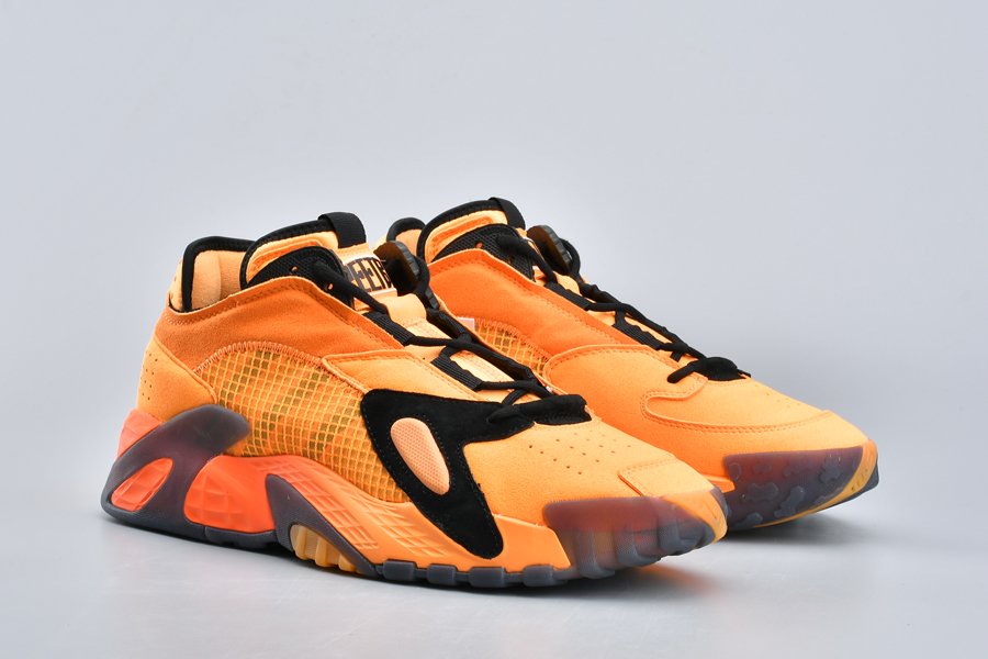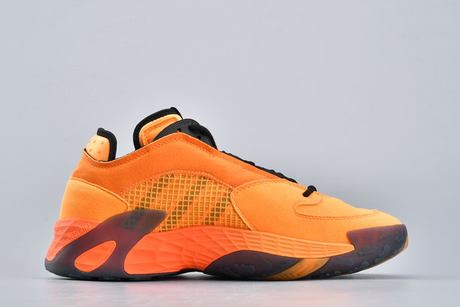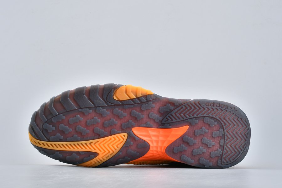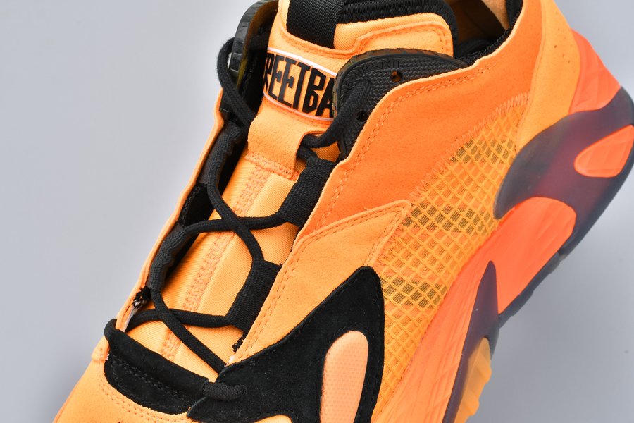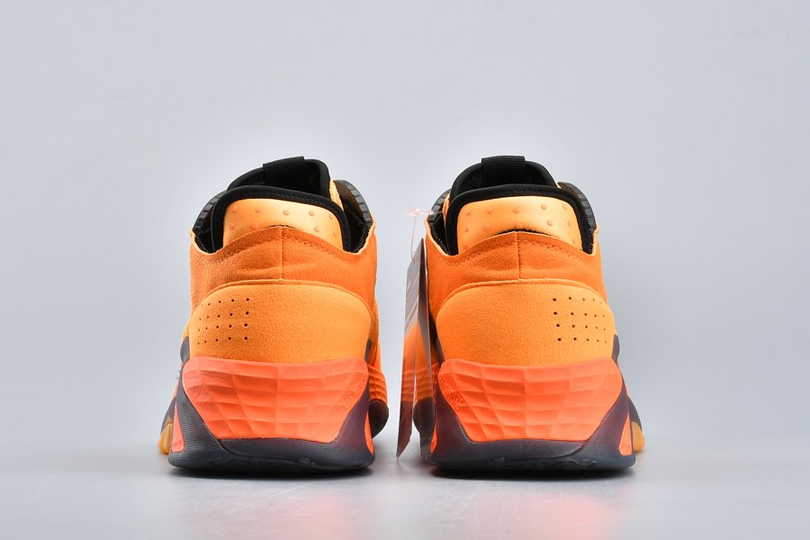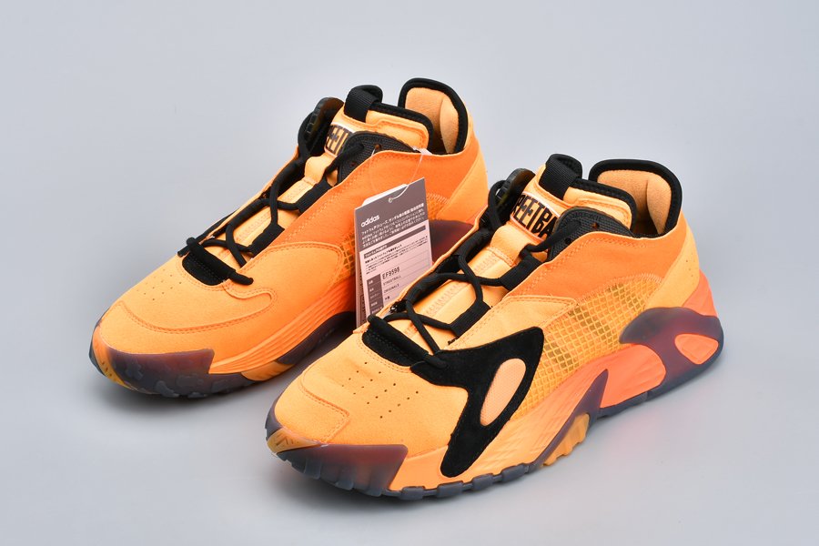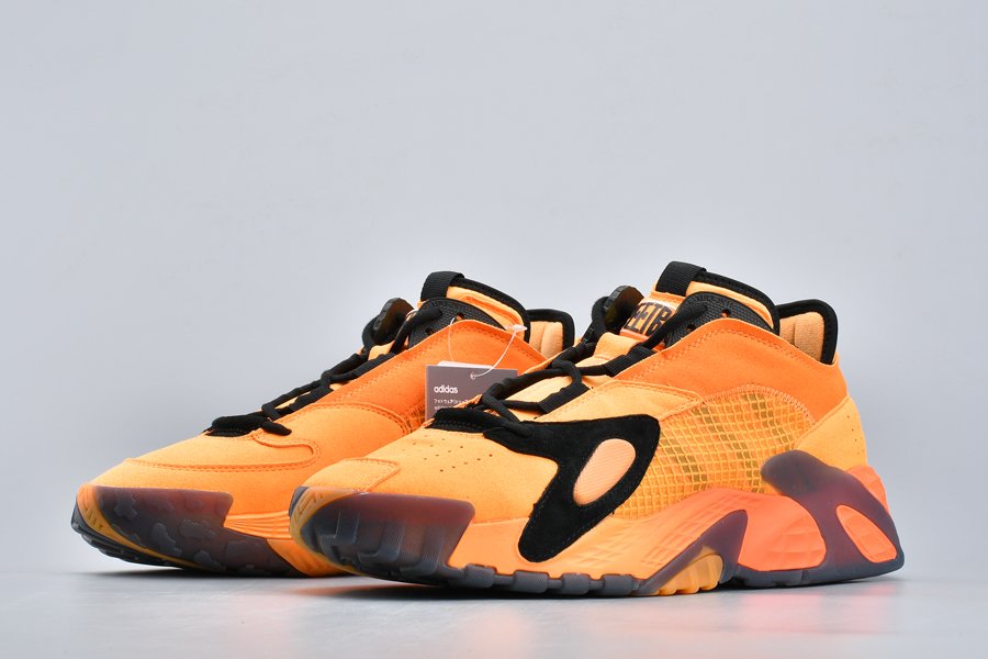 The adidas Streetball sneaker takes cues from the models that dominated the basketball courts in the 90s. Debuted in August 2019, this edition in Flash Orange mesh and suede has curvy panels, a laced internal bootie and strategic perforation. The iconic Three-Stripes are partially obscured at the midfoot while the shoe’s moniker surfaces on the tongue. Translucent outsole rubber wraps up and around the Lightstrike midsole for a futuristic look.