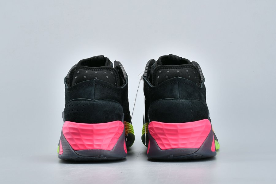 The performance basketball sneaker boasts a mixed material construction with suede or leather overlays and mesh mid panels. The elevated design is further enhanced with a gradient midsole that incorporates hints of Pink, Orange and Green on the Black pair. This adidas Streetball is completed with translucent outsoles.