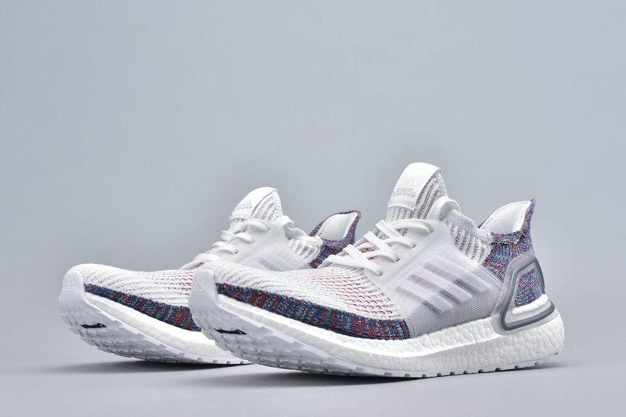 Designed with the help of thousands of runners around the world, the original Ultra Boost was deconstructed into four key components for the adidas Ultra Boost 19 Footwear White Crystal White Blue. Focusing on an optimised Boost midsole, an enhanced Torsion Spring, and an updated 3D heel frame, the futuristic runner also introduces Primeknit 360 for lightweight comfort. Painted in a predominantly white hue, multicoloured detailing graces the heel, while red stripes make their way to the stark upper for a pop of contrast.