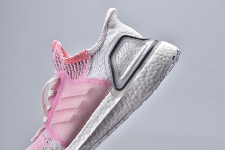 Showcasing the newest Motion Weave technology where the Primeknit used to be, the Ultra Boost 2019 will be giving you flex and security like no other. A weaved colour pattern is included, with a mix of darker tones and bright pink and white, creating a unique styling for the Motion Weave upper. A pink cage can also be seen down the sidewalls, up towards the lace unit for added durability.