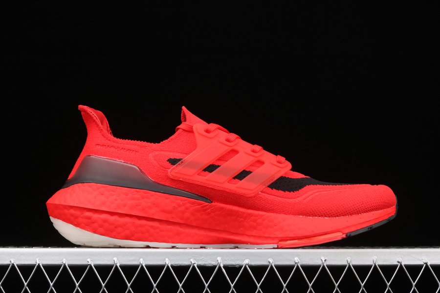 This Ultra Boost 2021 comes dressed in a Vivid Red and Core Black color combination. Made with Primeblue, a high-performance recycled material that features Parley Ocean Plastic. Also, 50% of the upper is textile, and 75% of the textile is Primeblue yarn. Red then adorns the lace cage, Three Stripes branding, laces, Boost midsole, and rubber outsole to finish the look.